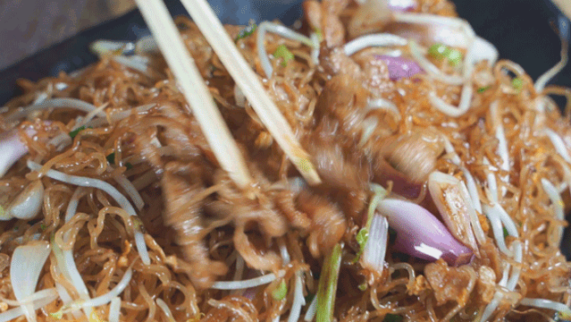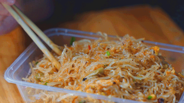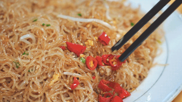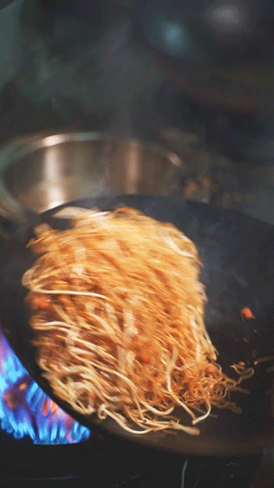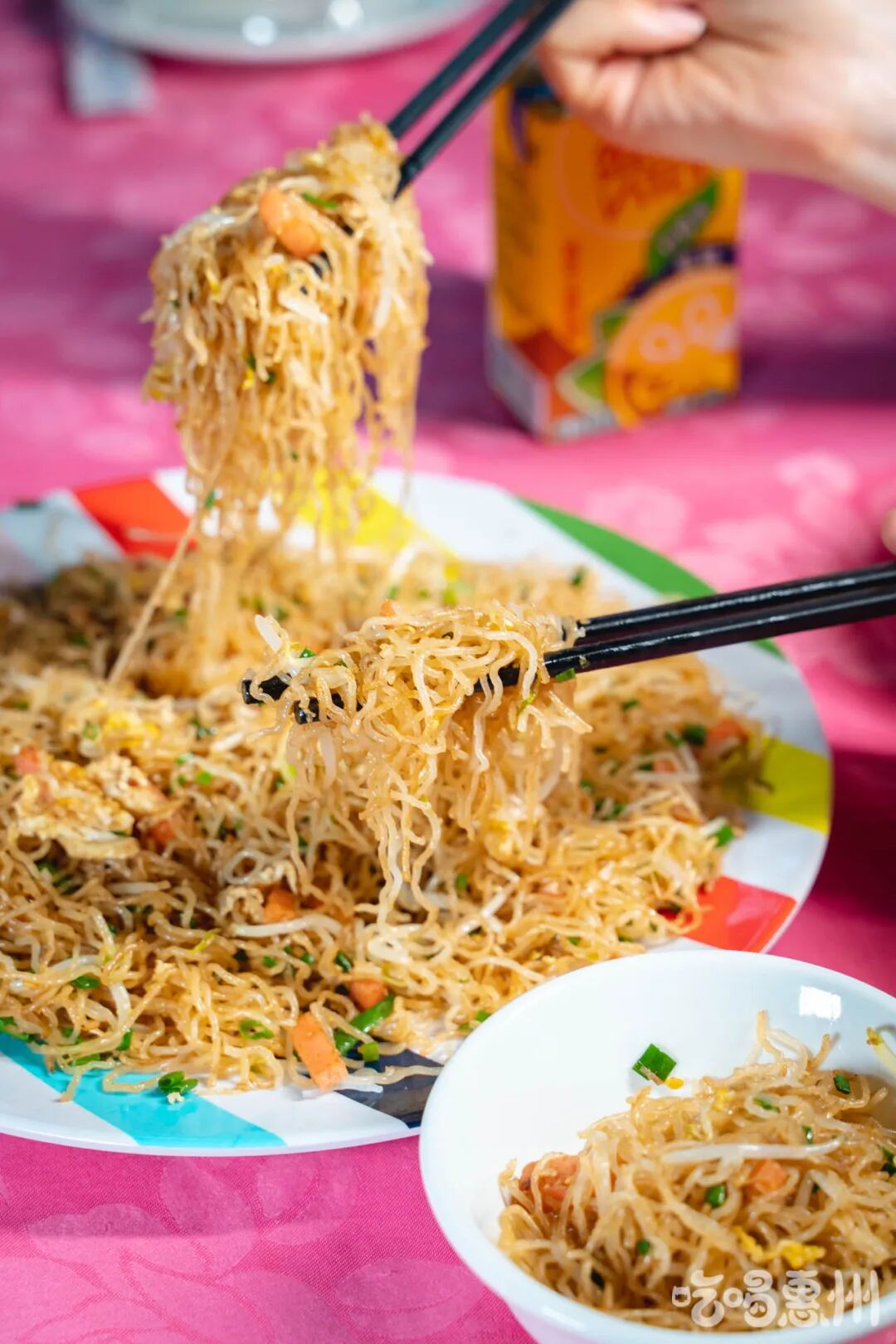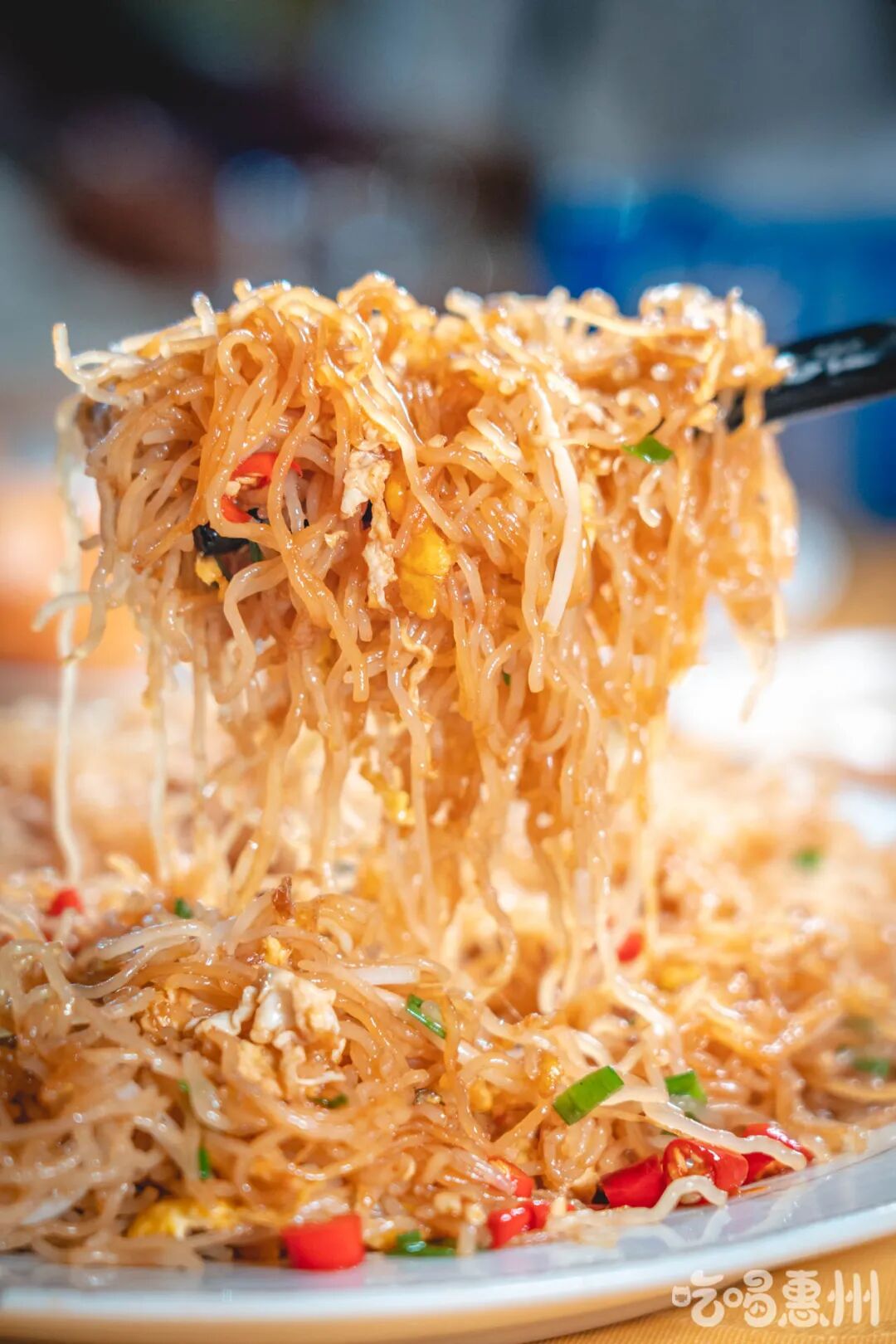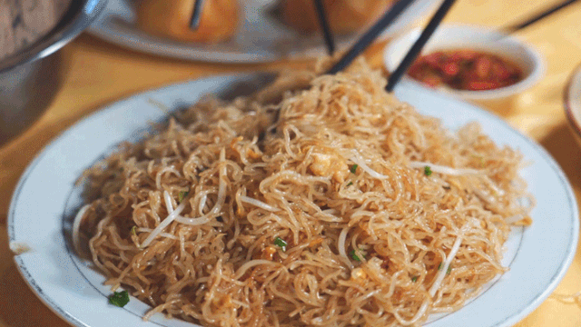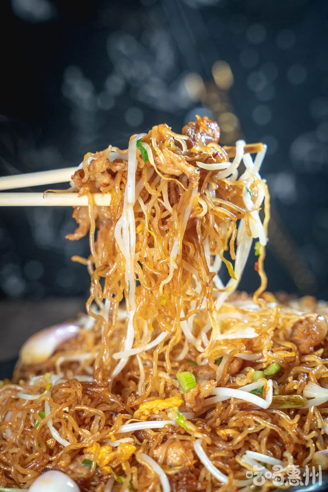 刚端上来的炒粉还是锅气十足的,赶紧趁热吃上一口,简直是深夜里的精神慰藉。