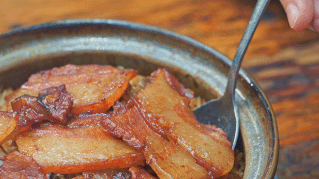每一锅煲仔饭都有梅菜,不过这一锅的灵魂在于梅菜的神仙CP:扣肉!