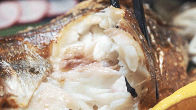 第一口记得先吃鱼背鳍边上的肉,那里是鱼身活动最多的地方,口感也会比较紧实。