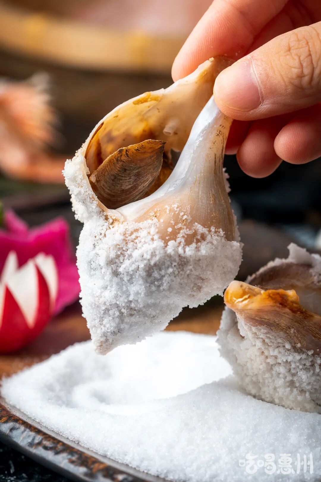 除了鱼类和大虾,还有贝类可以选择。雪白的海盐像是给螺披上了一层美丽的头纱,好让她开开心心地出嫁。