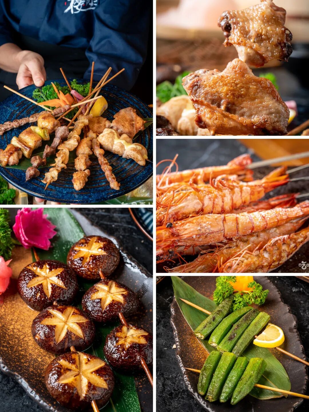 它家的烤物种类很多,盲点也不踩雷!烧鸟拼盘、碳烤大虾、碳烤香菇、秋葵……每一款,我都推荐!
