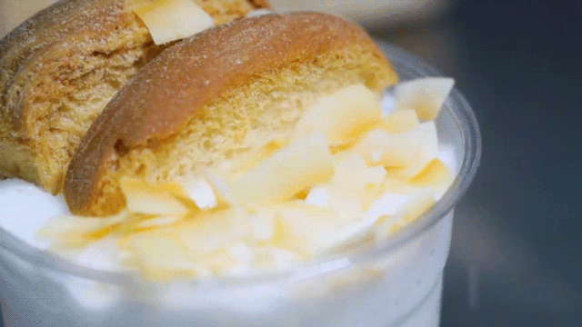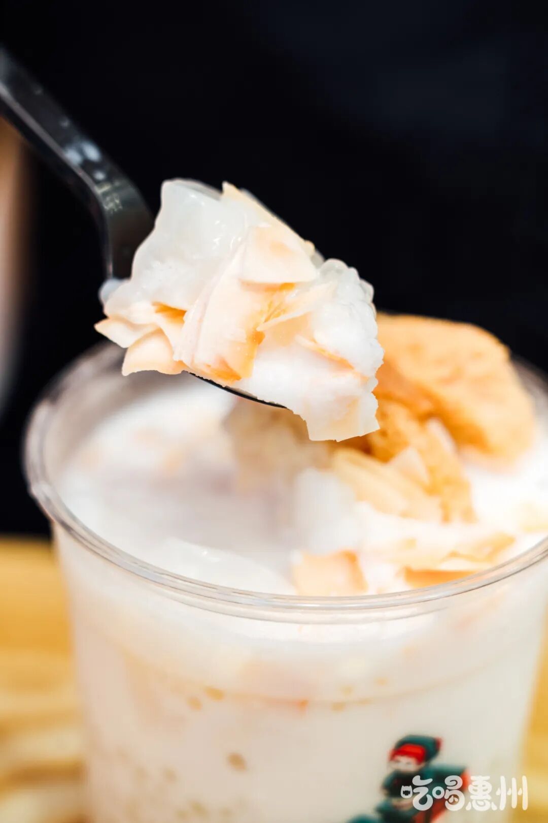 上层撒满酥香脆爽的椰子片,配合浓郁的冰沙一口吸入,椰子的香味充斥口腔。