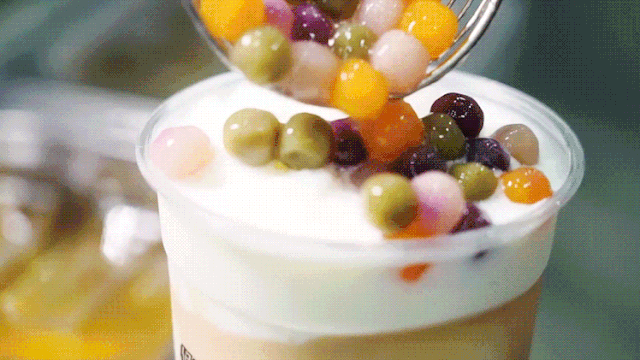 配料丰富度:珍珠、椰果、打碎芒果浆