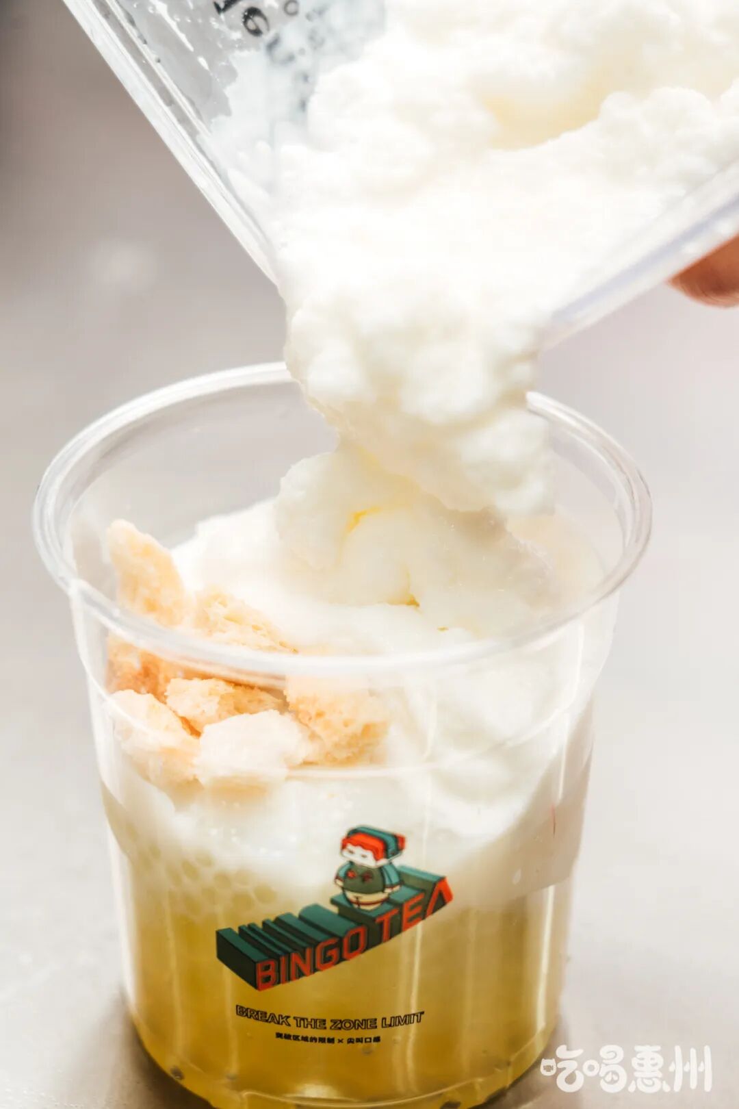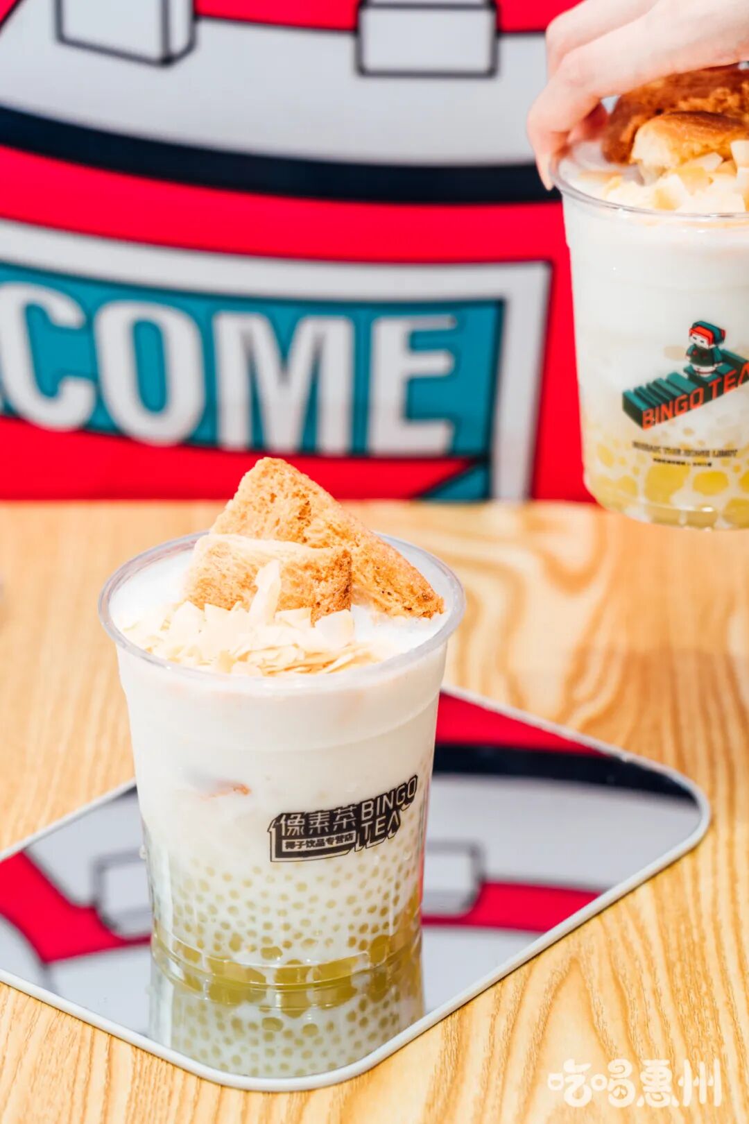 论脑洞我就服像素茶,居然把咸蛋黄加进茶饮里。芋泥+啵啵+蛋黄酱+茉莉奶绿茶底,一杯蛋黄啵啵茶就出炉了。对咸蛋黄没有抵抗力的我不管三七二十一,先喝为敬了!