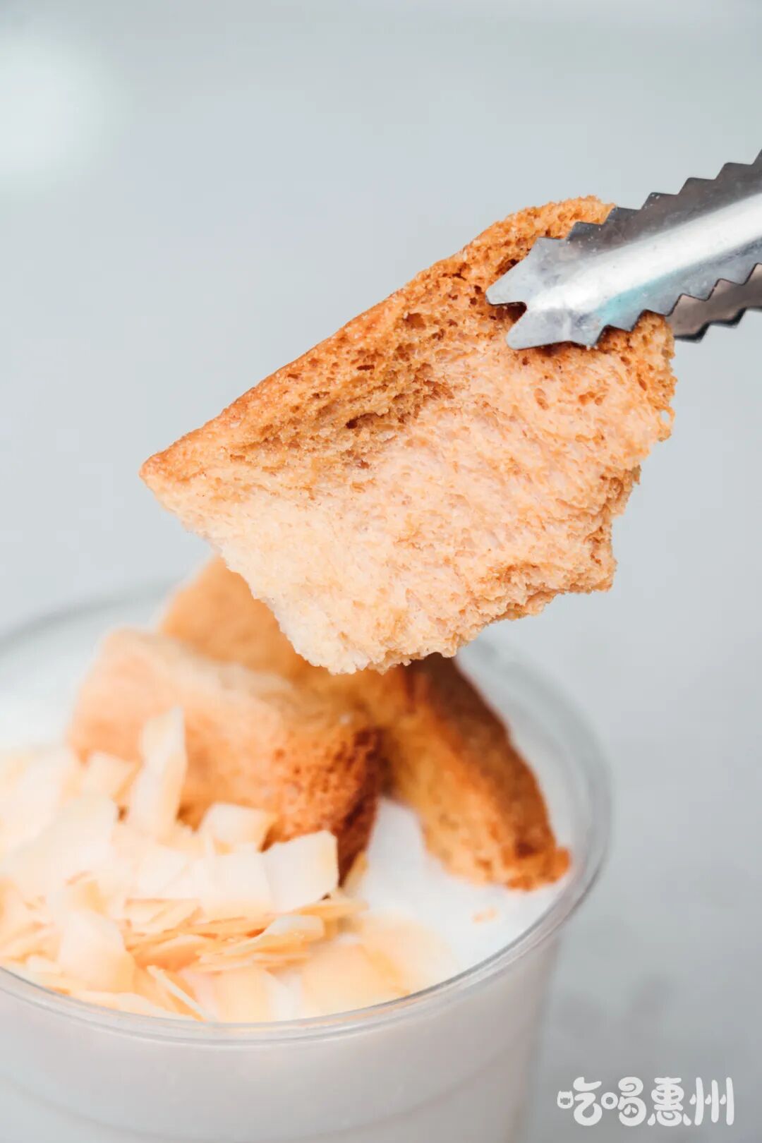 加入缅甸面包干就等于注入了灵魂,这也是泡鲁达KO普通椰子冰的制胜法宝。喝完一杯泡鲁达,我甚至想追加一份面包干直接吃,因为它真的越嚼越香啊。