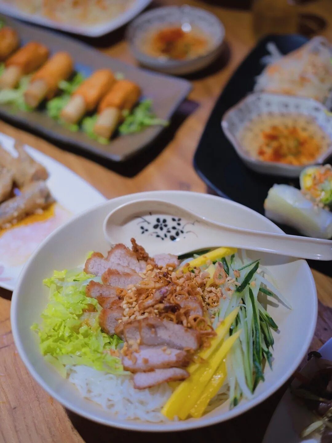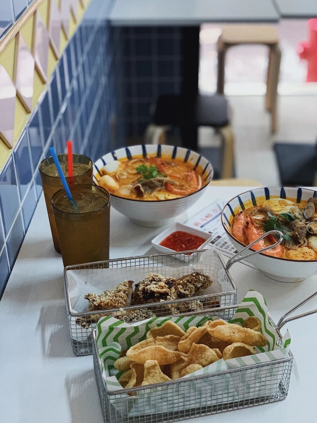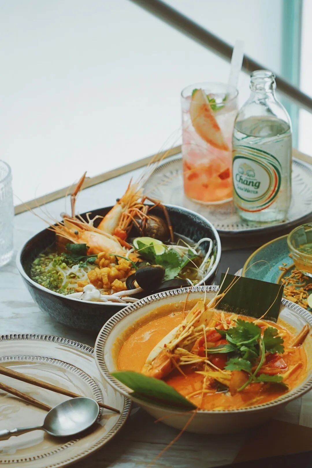 点单推荐: 冬阴功海鲜金边粉、泰式烧猪颈肉、泰国奶茶布丁
