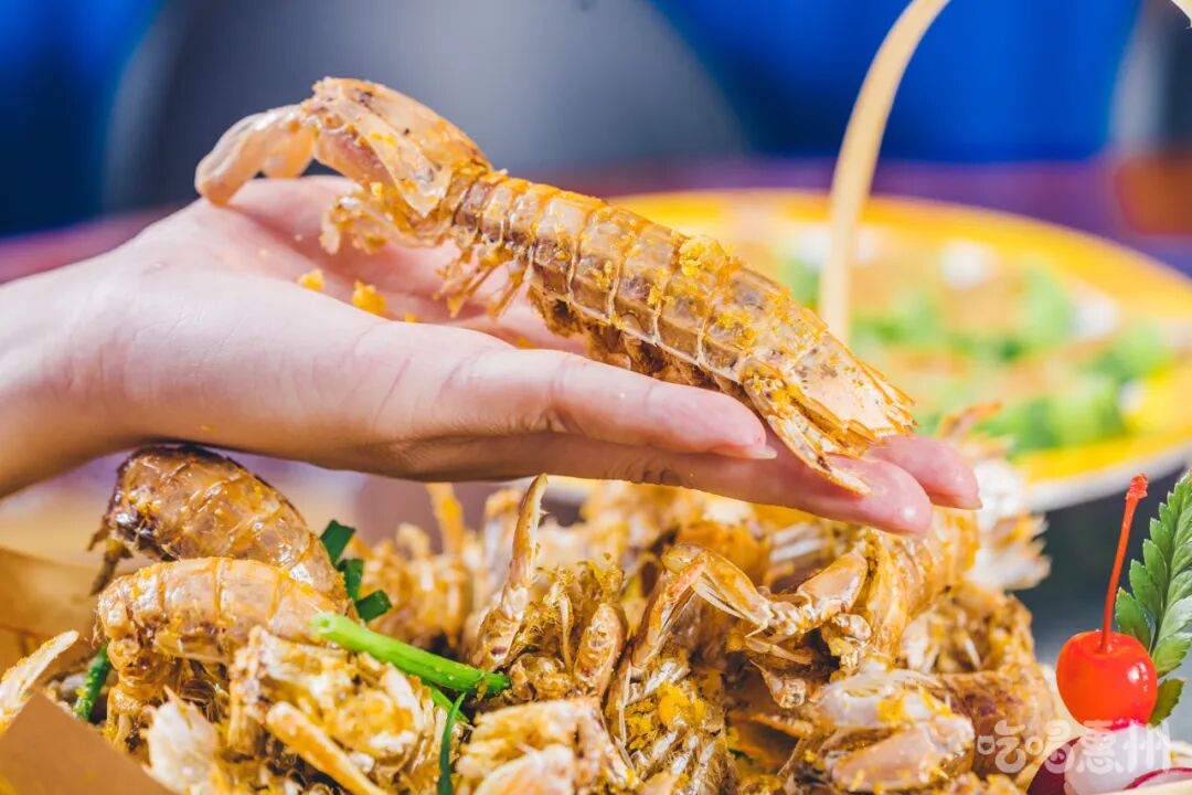 椒盐虾特别的脆,我尝试了几个直接咬,嘎滋脆还蛮爽的,除了扎嘴以外。听喜碧阿姨说,光一晚上就要卖掉上百斤濑尿虾。