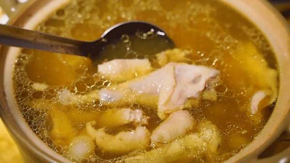 肠粉内的炸蒜豉油是店内特调的,喜欢将每一块肠粉都蘸得均匀。会吃的人习惯拿窑鸡的酱汁捞肠粉,这样更入味。