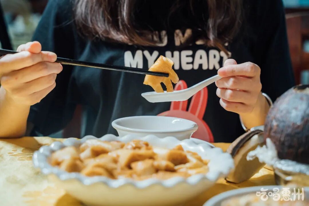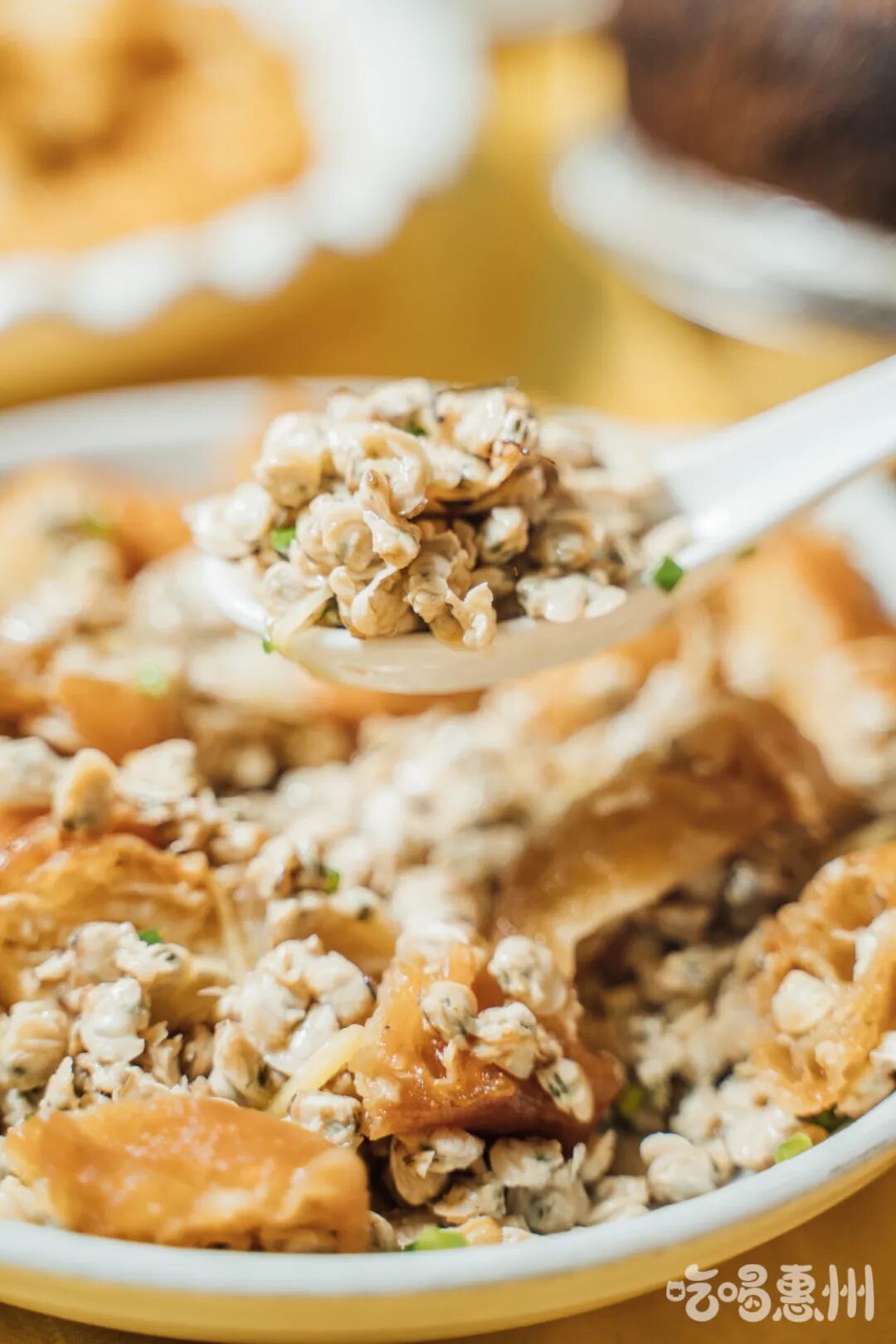 蚬肉是惠州人熟悉的老朋友了,但油条炒蚬肉我还是第一次见。两种看似不搭的组合,在这里能碰撞出不一样的色彩。