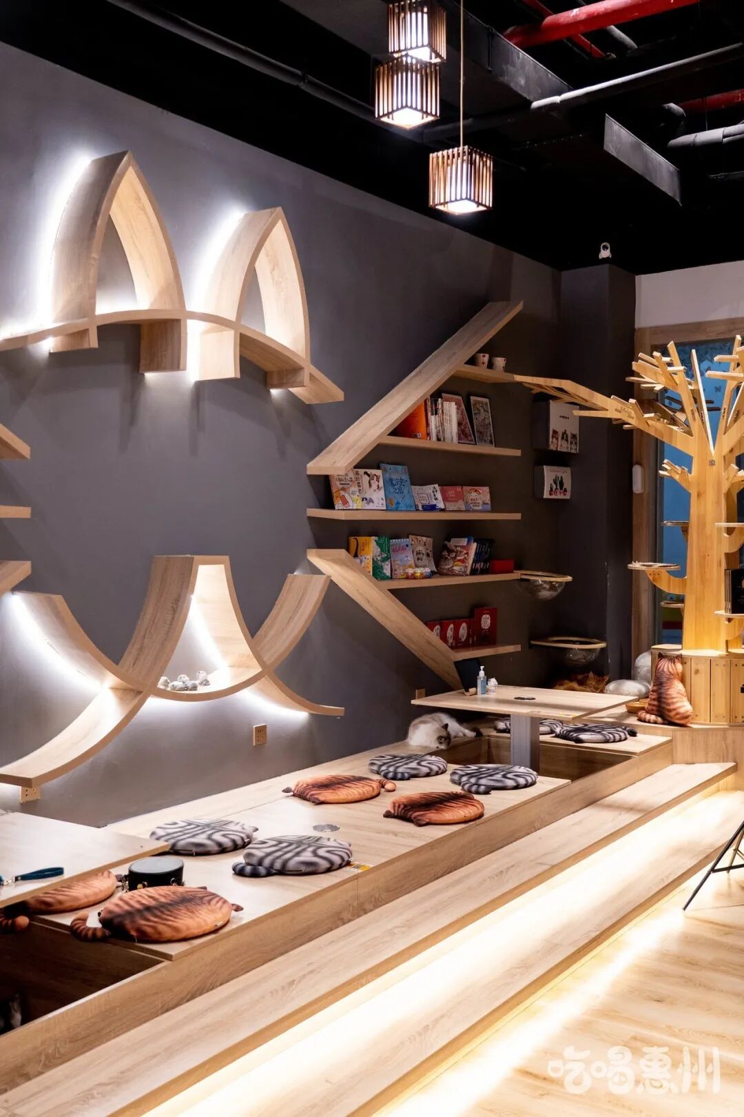 猫教授一共有三层,每一层都有专门的功能区,为猫咪提供最高级的服务和管理。三楼就是撸猫官必定会去打卡的撸猫区域。