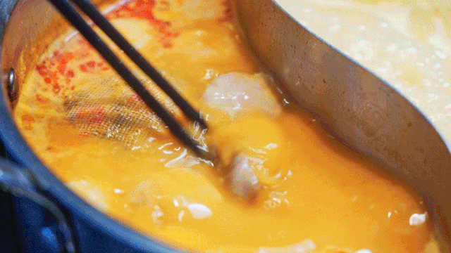 锅底沸腾后牛奶的乳白色就显现出来,这款锅底受到一位四川籍店员的强烈推荐,喜欢辣味的朋友们来点它,一定不会错!