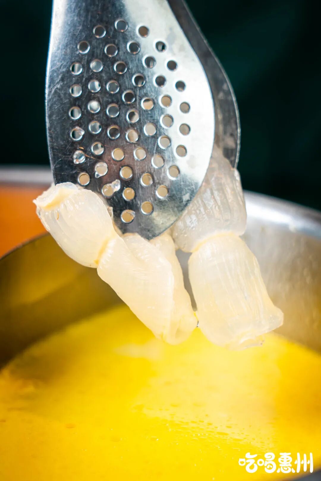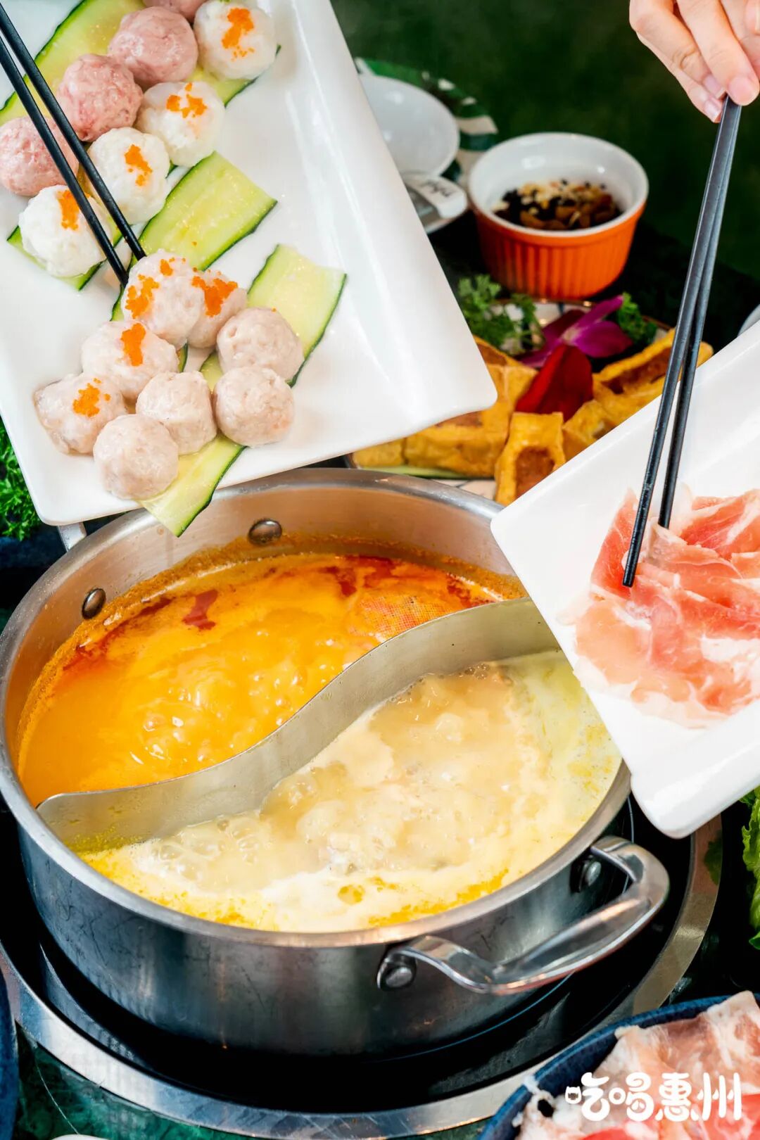 这次集渔做了冬阴功与花胶鸡组合成鸳鸯锅的新尝试,光从红与黄的两款撞色搭配就让人眼前一亮!