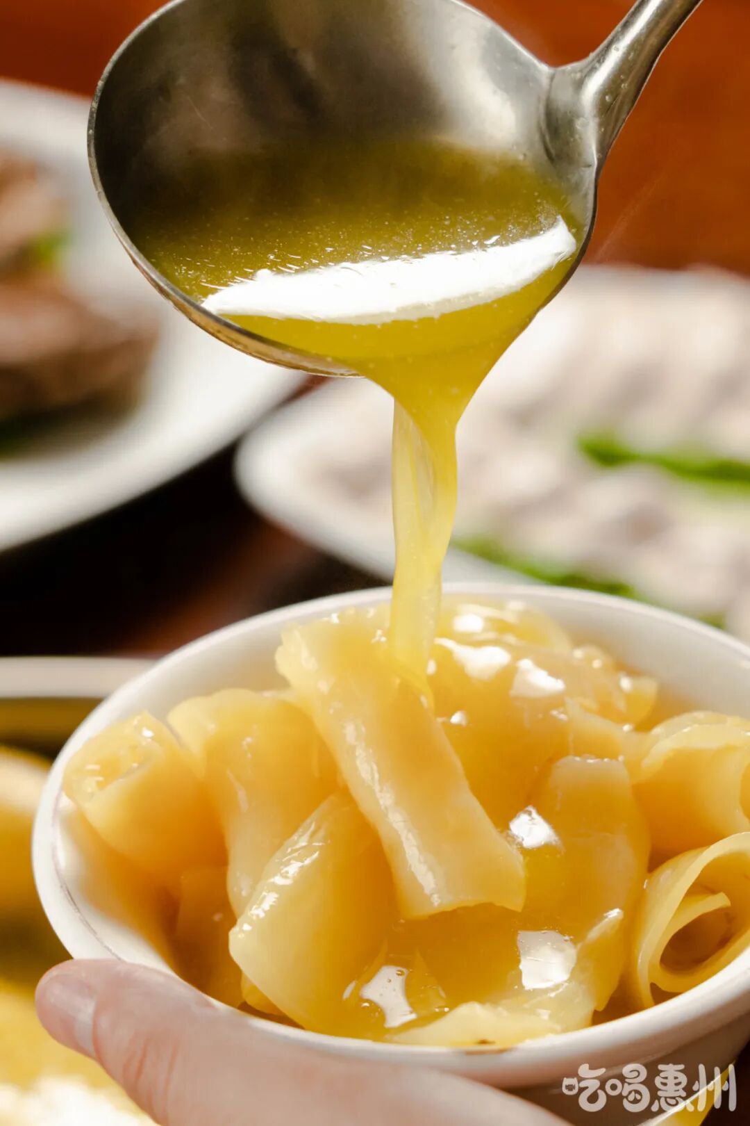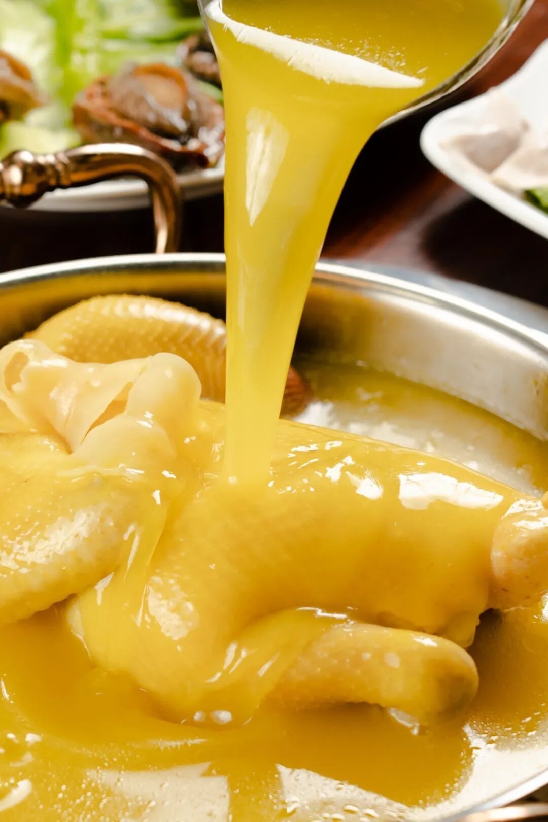精选出来的花胶,色泽淡黄而透亮,口感软糯弹韧,在它的加持下,汤底越煮越浓稠。淋上浓稠的鸡汤,吃完还会有黏嘴的感觉…(是胶原蛋白啊!)