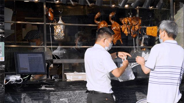 下午五点左右,烧鹅仔的明档口,不间断地会有街坊/上班族过来斩料回家,对于住江北的人来说,这就是他们的日常。