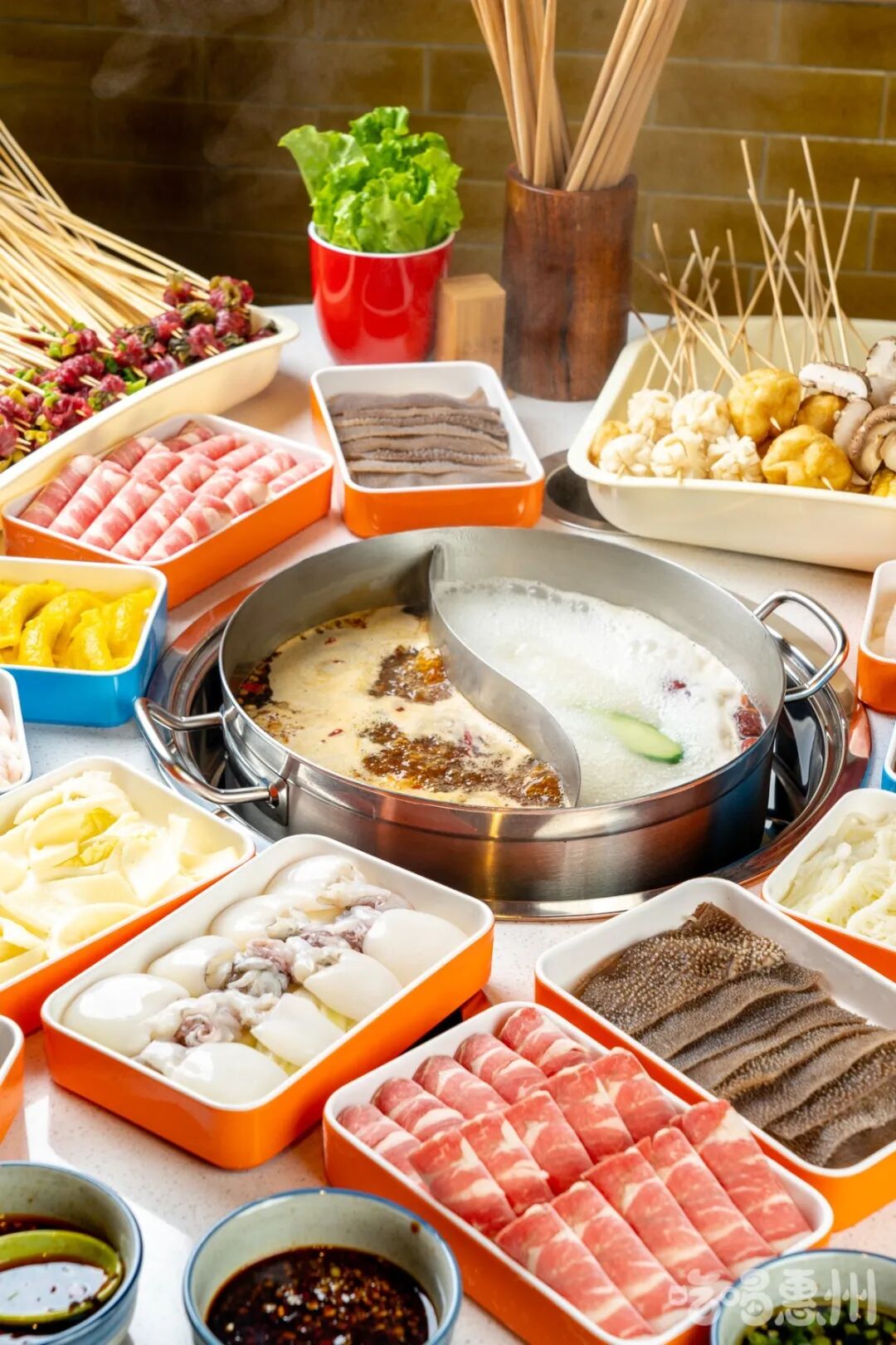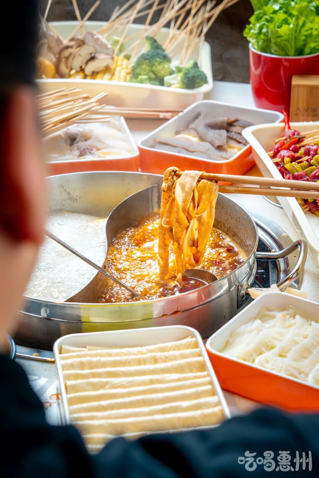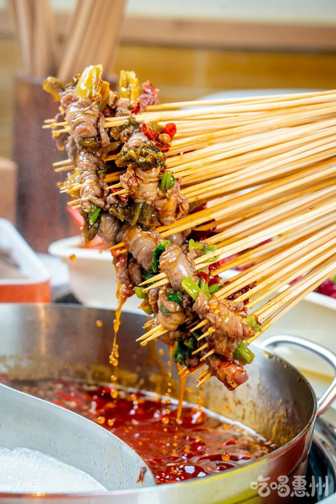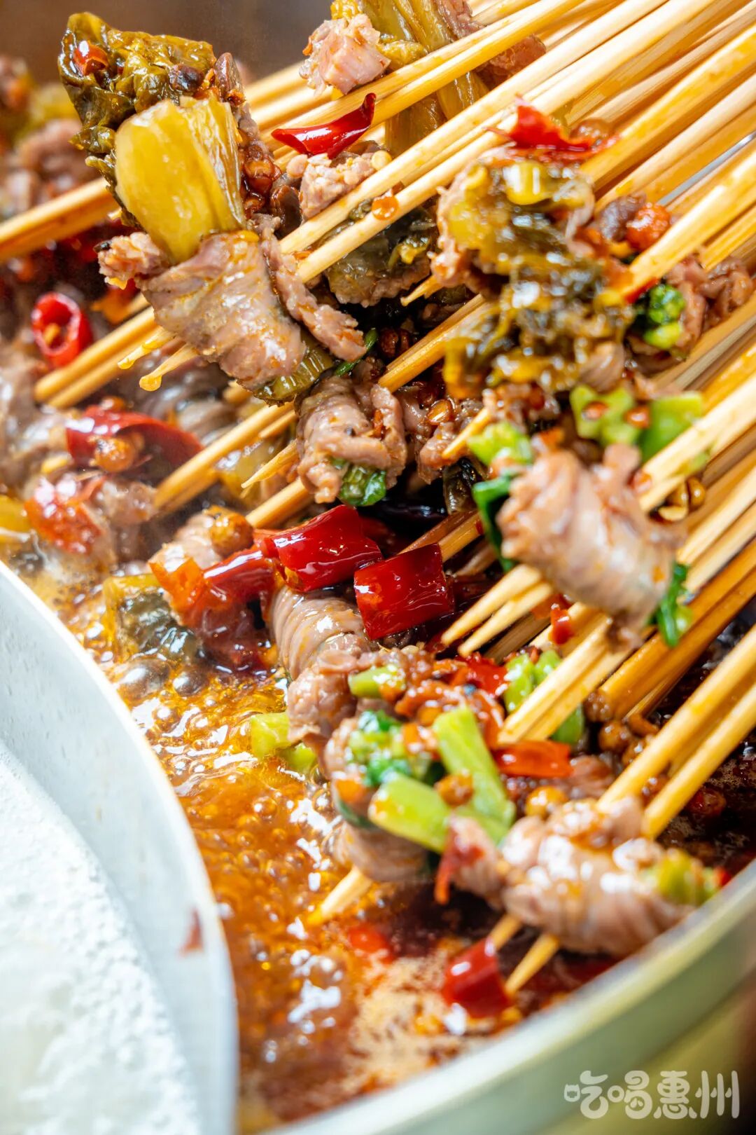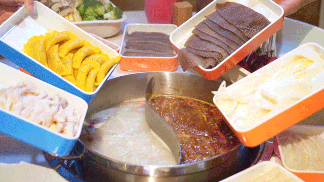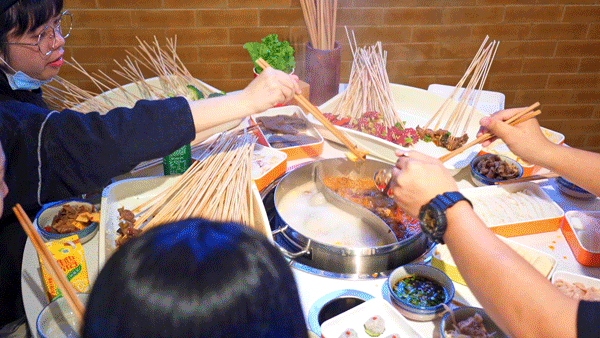 在这里,串串+火锅的奇妙搭档,纠结火锅与串串吃哪个的世纪难题终于解决啦!提起签子、拿起盘子全往锅里涮,爽!