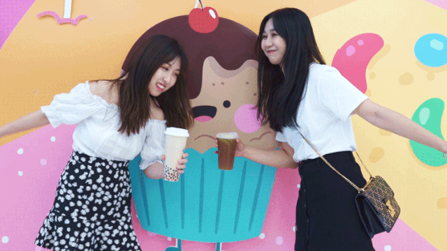 拿着两杯颜值货,在二楼的美陈点打卡。有一说一,美呆!