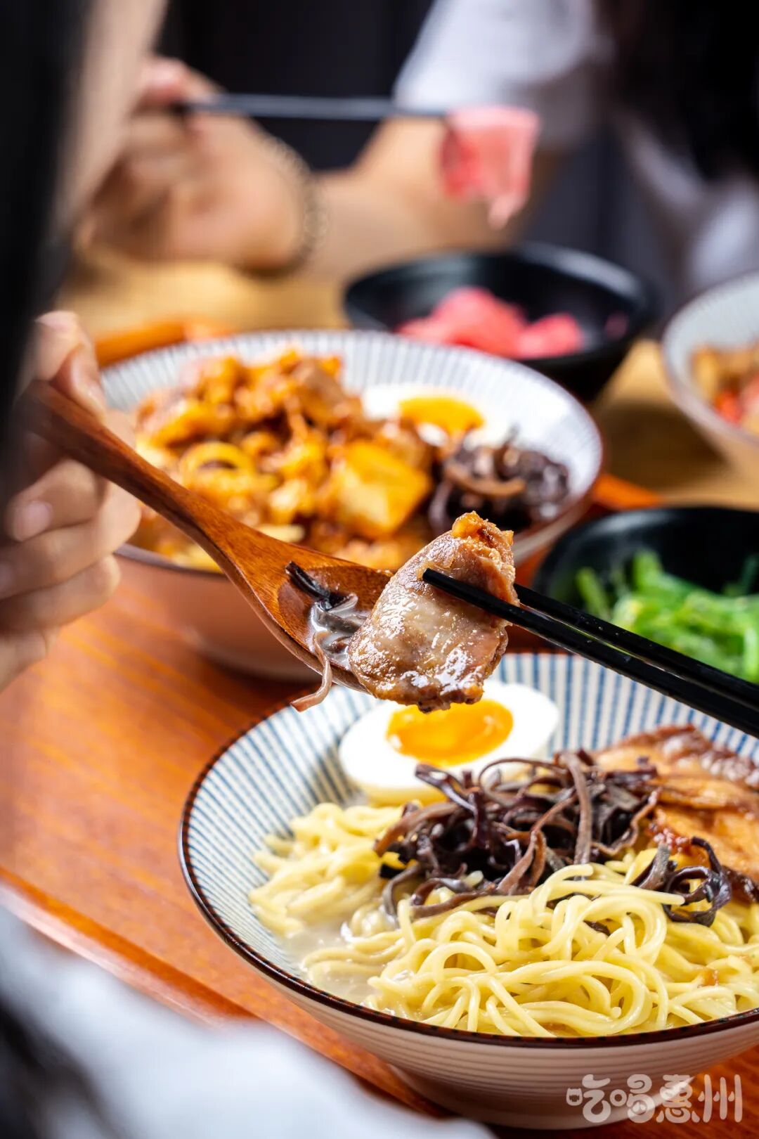 没有花里胡哨的食材,只需微微炙烤的叉烧肉、爆浆的流心蛋、还有笋干,便组成一碗标配的豚骨拉面~