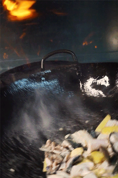 猛火爆炒鱼骨是制作酸菜鱼中不常有的操作。配以简单的姜和蒜,鱼的鲜香,便在这一刻被完美的释放。
