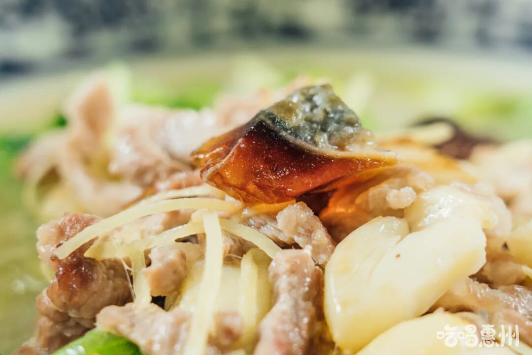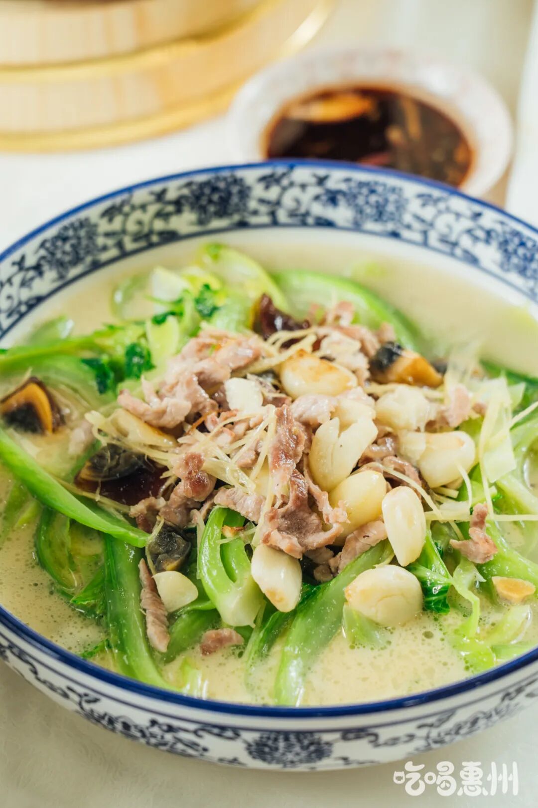 皮蛋加水芥菜,是客家人心中的美味。配以高汤后,咸香之余,还有微微水东芥的苦,两者结合,恰到其中。