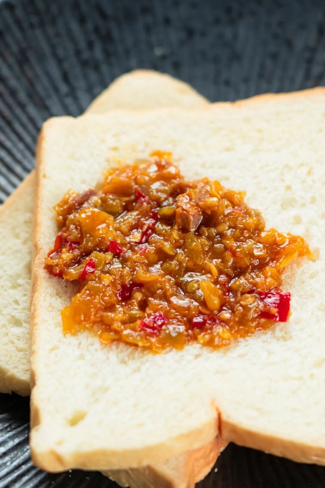 年轻的广东人,怎么可能不吃辣!野山椒凃抹在面包片上,黑暗料理的既视感。