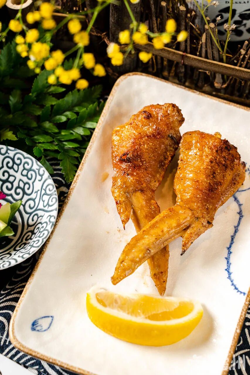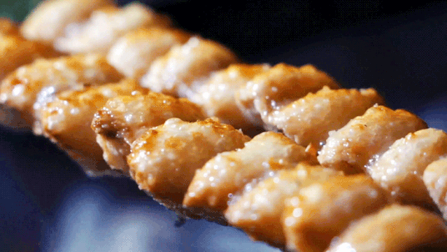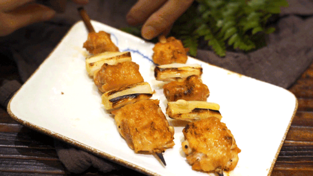 食材大部分都是从日本当地采购,鸡肉选用当地黄羽走地鸡,鸡肉结实,汁水丰盈。一代传一代的烧鸟师傅,纯熟地将每一粒盐均匀撒布在串烧上,使咸味恰到好处。