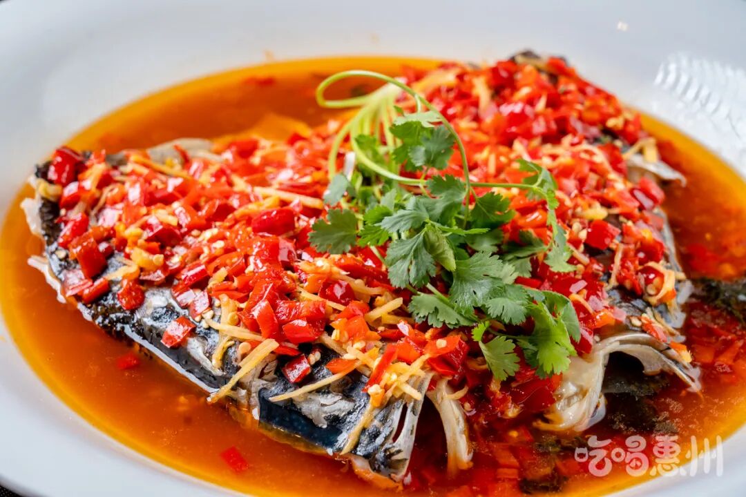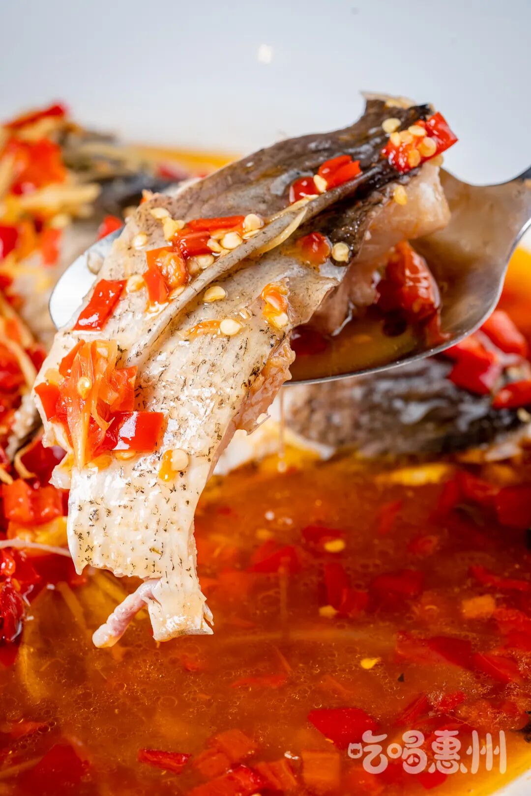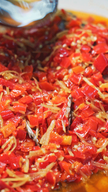 剁椒千岛湖鱼头甄选大红椒,经过长时间的腌制,才形成这般色彩。铺上满满一层,才又香又辣又入味。