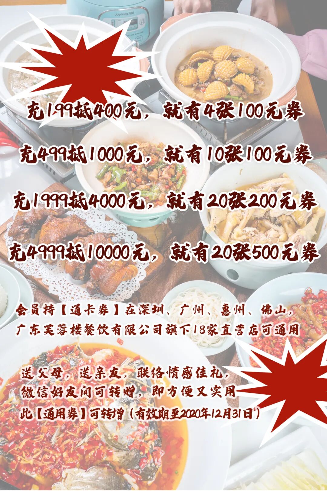 广东芙蓉楼餐饮有限公司所有直营门店无门槛全城全店通用