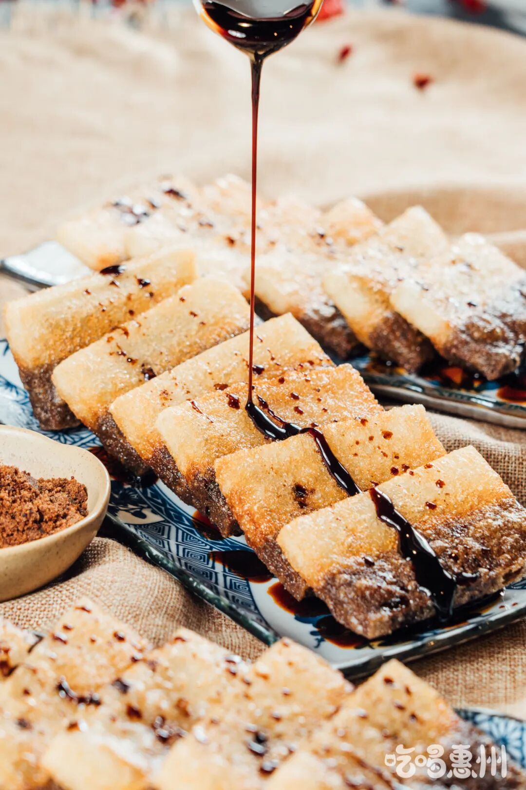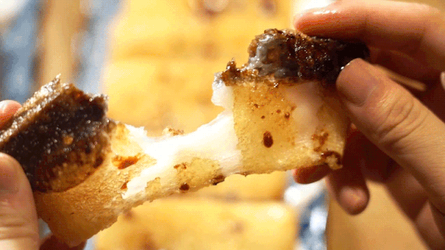 探鱼的鸳鸯糍粑,采用的是黑米、糯米、黄豆粉以及红糖经油煎而成。口感Q弹酥脆的同时,还保留了糍粑本身的糯软,1元1份,馋了!