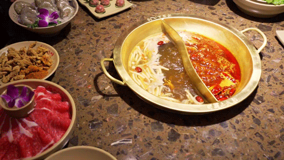 浓郁的麻辣味并不是锅底的全部味道,而最勾人心魄的还是辣味中带有的那一丝回甜,显得锅底尤为鲜美,味道也更有层次,而且不会越吃越咸。