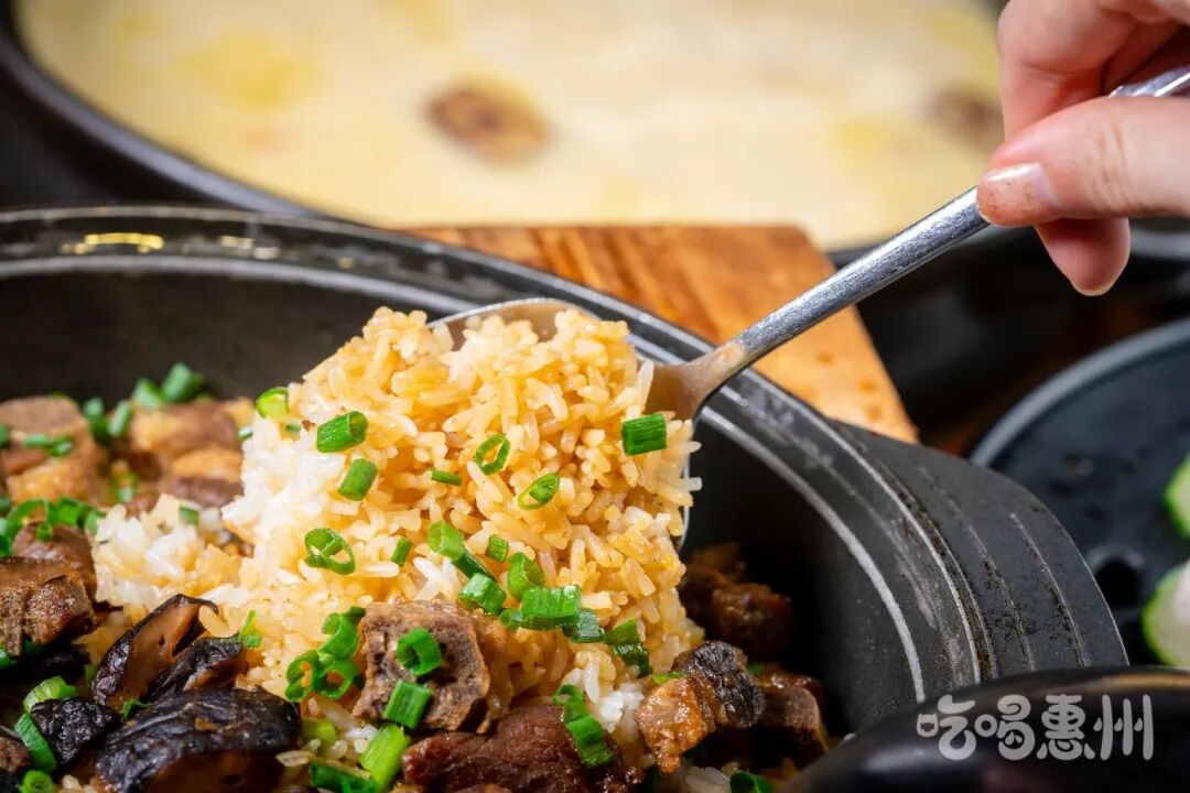 吃猪肚鸡之余,煲仔饭是每桌客人必点的人气主食,一口猪肚鸡汤,一口煲仔饭,这样才称得上妥当。