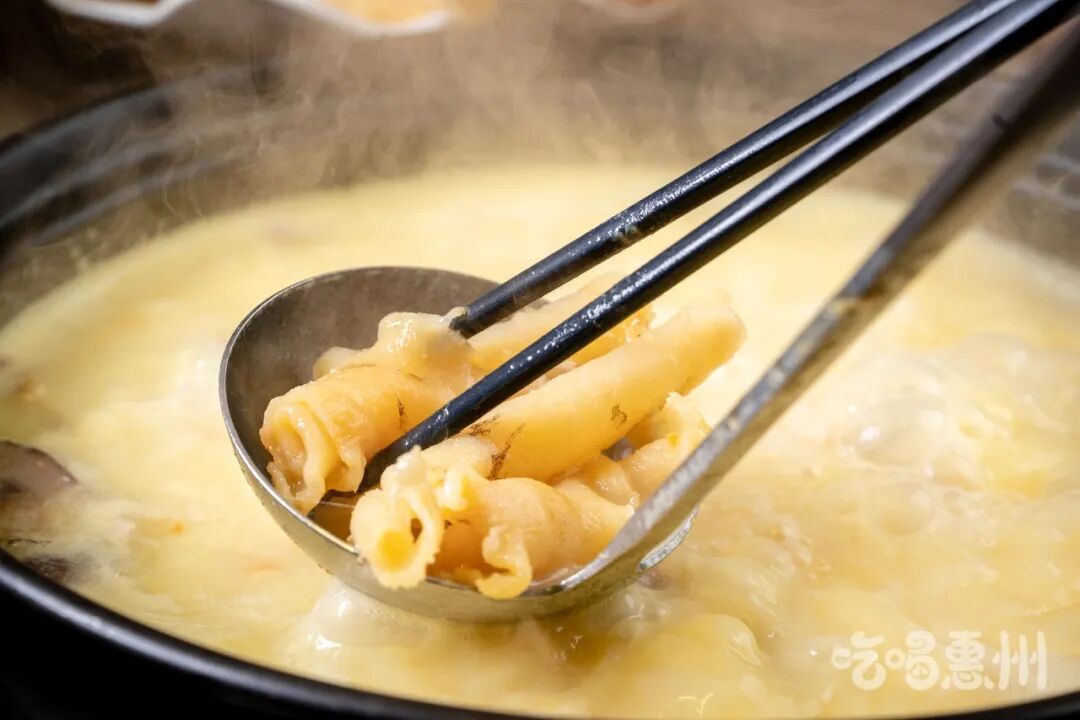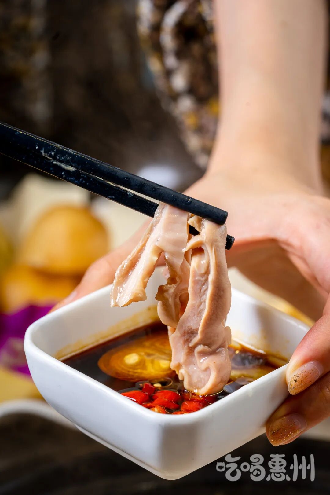 选用散养240天果园鸡,到店当天现杀,为的是保证品质,让每个食客能吃到鸡第一口好肉质。而猪肚则走18道传统工序,严格烹饪而出。口口爽脆,在舌尖上得到很好的绽放。