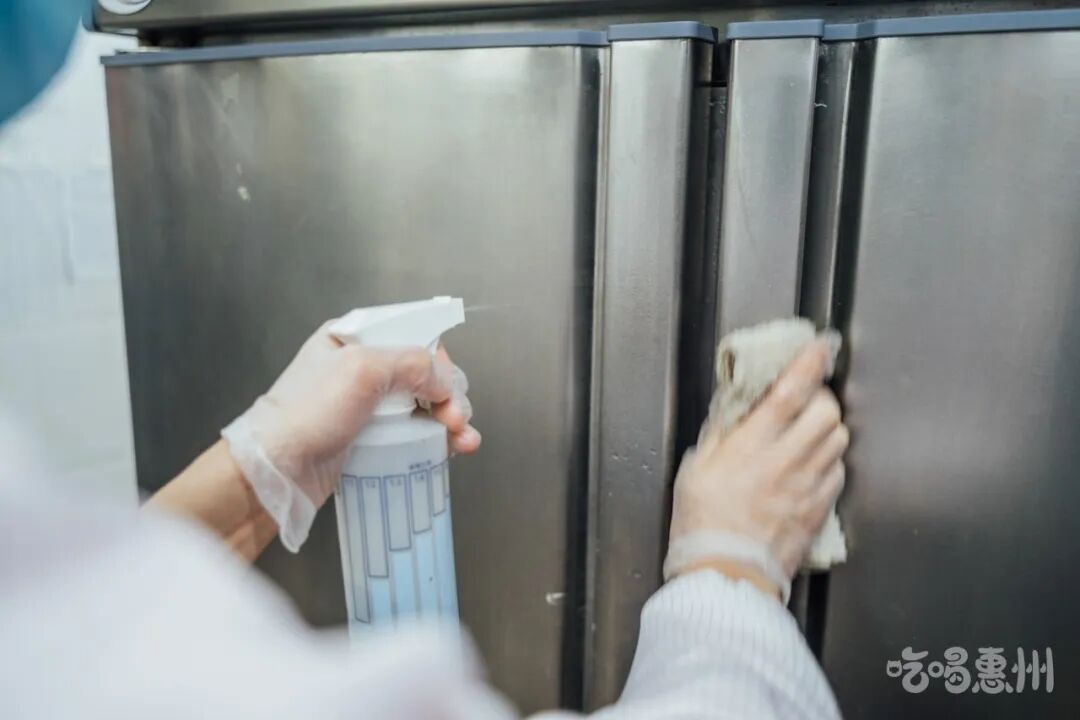 为保证人员及食品安全,上岗前要接受全方位酒精消毒和体温检测。全程无菌操作,确保食品安全。