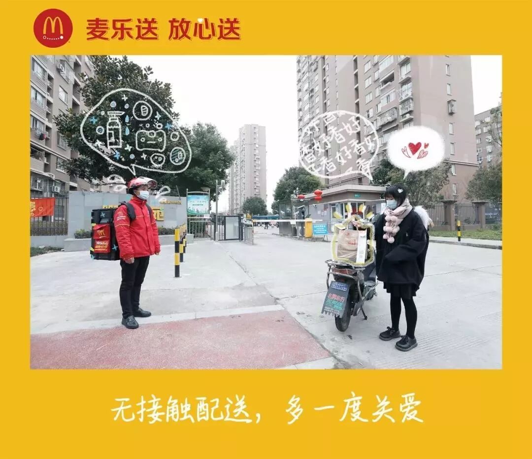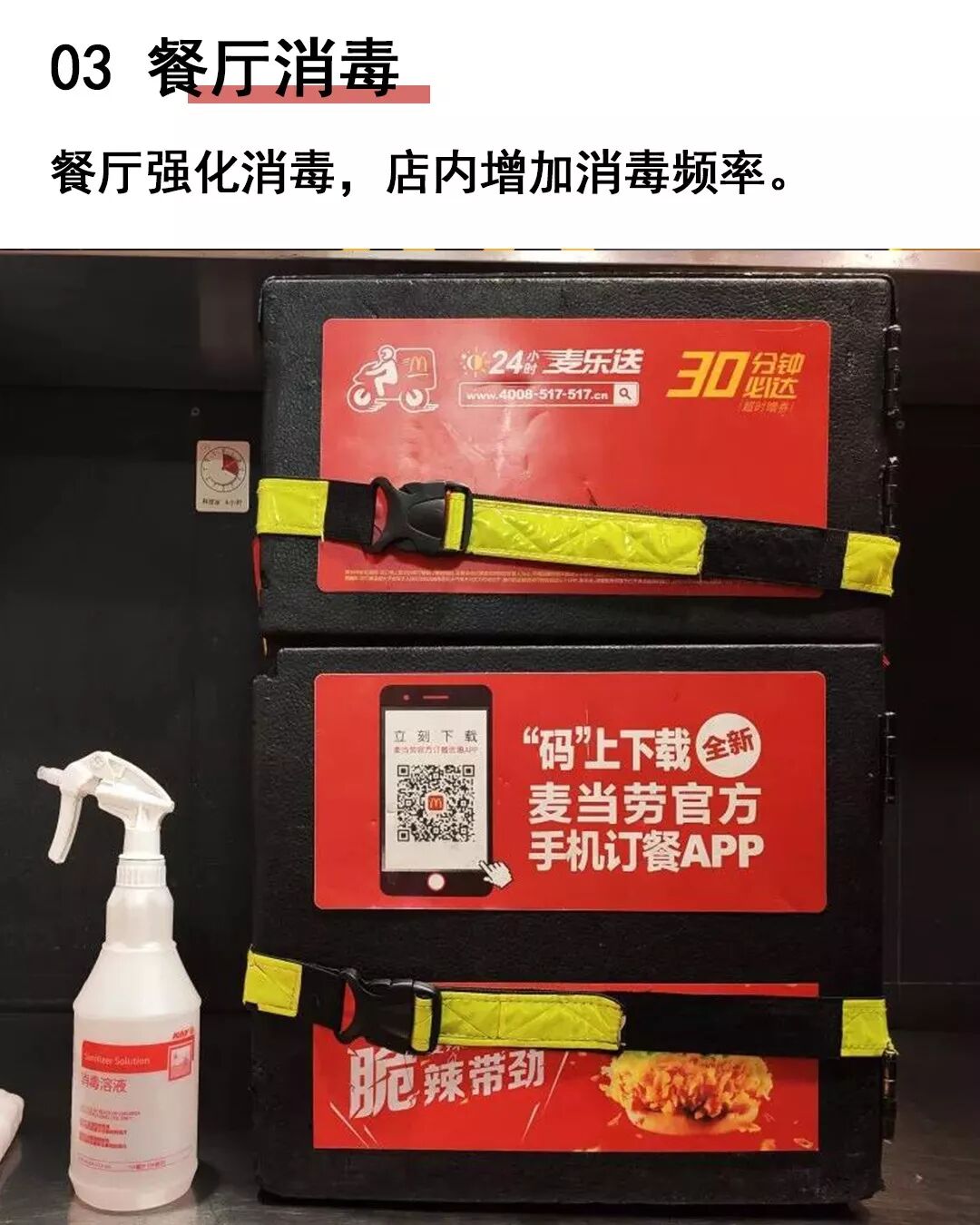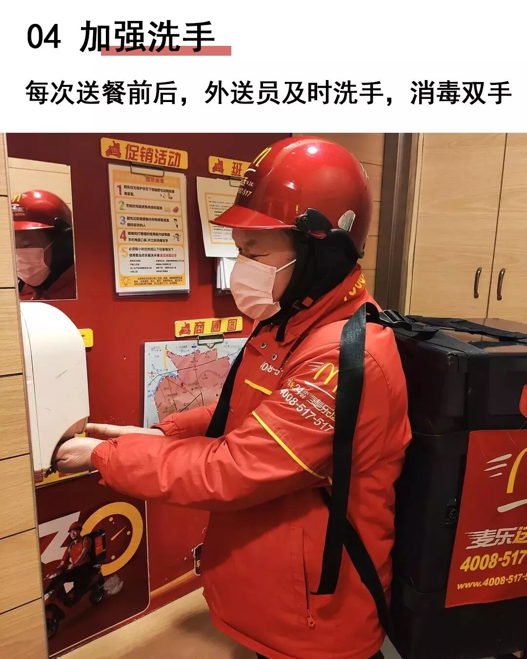 为了让顾客更放心,麦当劳在全国餐厅实施“无接触到店取餐”,减少点餐、取餐过程中的人际接触;顾客在手机、餐厅自助点餐机或柜台点餐后,无论堂食或外带,员工都会将制作好的餐点装入打包袋并封口,放置到取餐处,顾客可根据订单编号自行取餐。