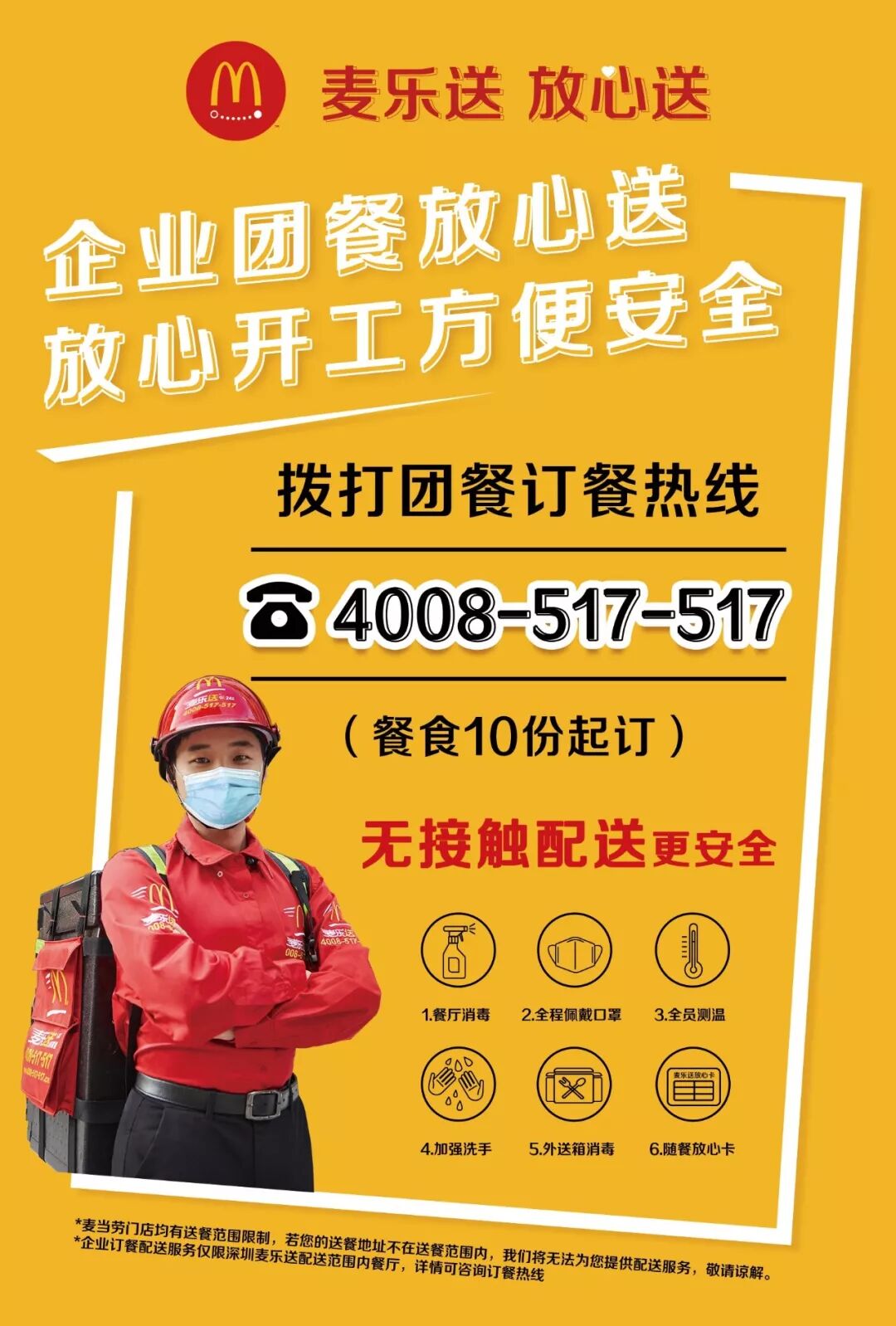 麦当劳针对企业集中用餐需求,特别推出了企业团餐预订服务,让复工的上班族错峰预约,吃饭点餐不扎堆,轮流取餐更安全。