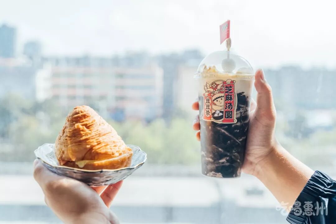想见你!芝麻汤圆豆豆茶、多肉葡萄、满杯红柚、火腿蛋可颂脆堡、熏鸡芝士蛋三明治、芝芝火腿可颂……