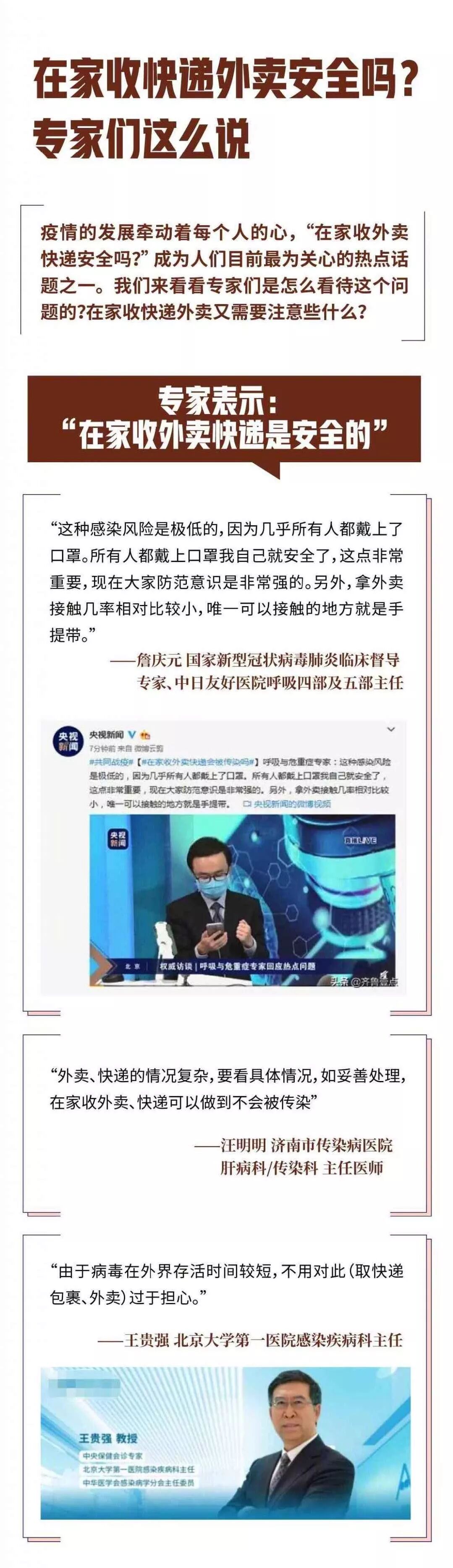 ①病毒主要的传播途径是通过呼吸道、飞沫传播,通过食品直接来传播的风险较小,目前没有明确证据证明病毒通过外卖、快递传播;
