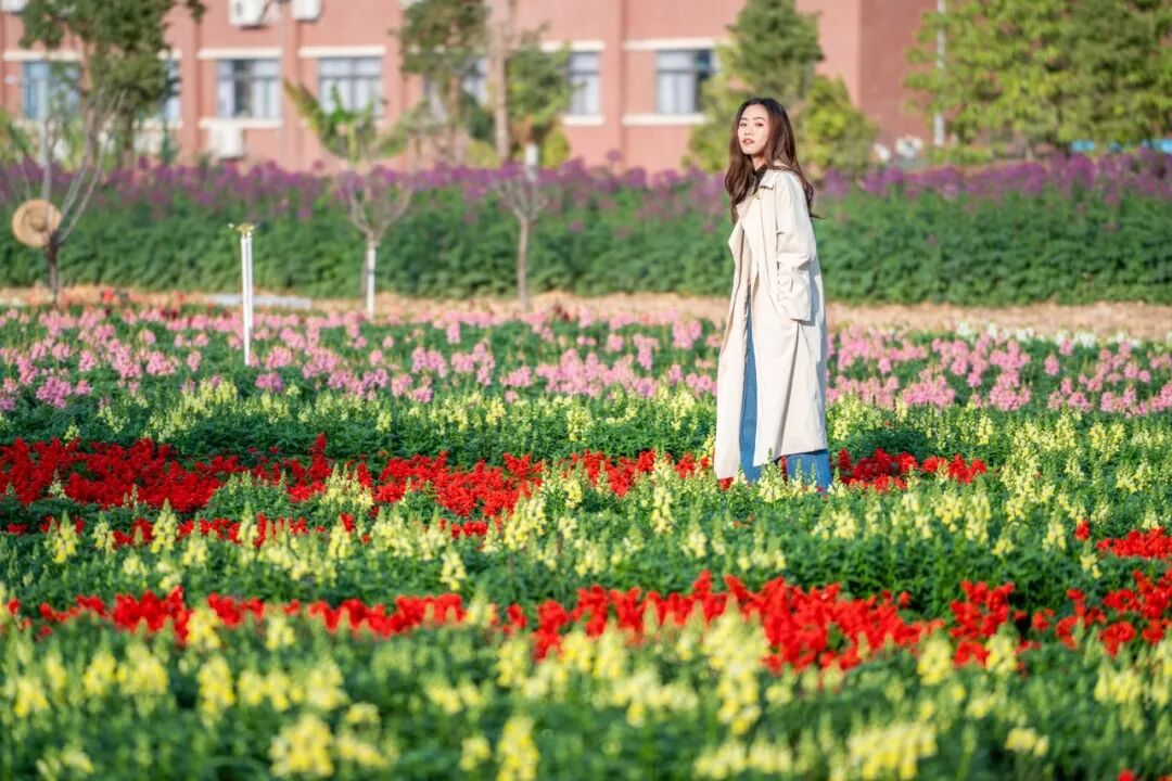 粉黄紫红,花田错落有致,高低相间,美得不像话。