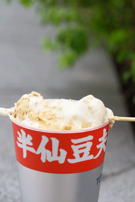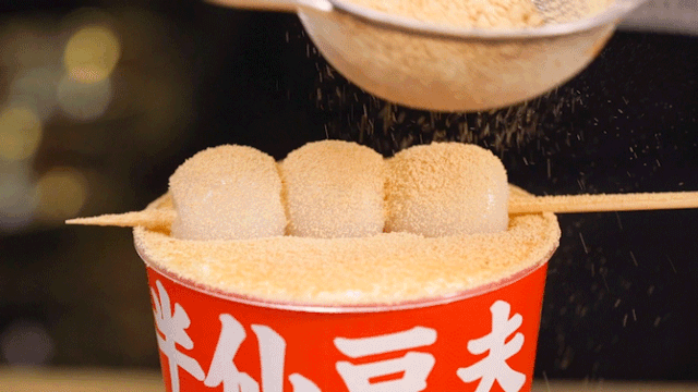 外带的话店员会将黄豆粉+白玉丸子外装给你,自己洒粉也不影响口感!棒!