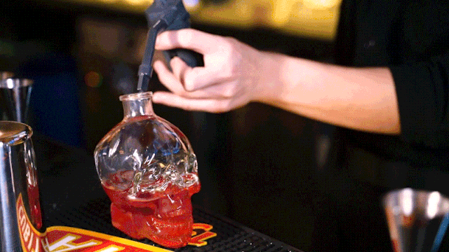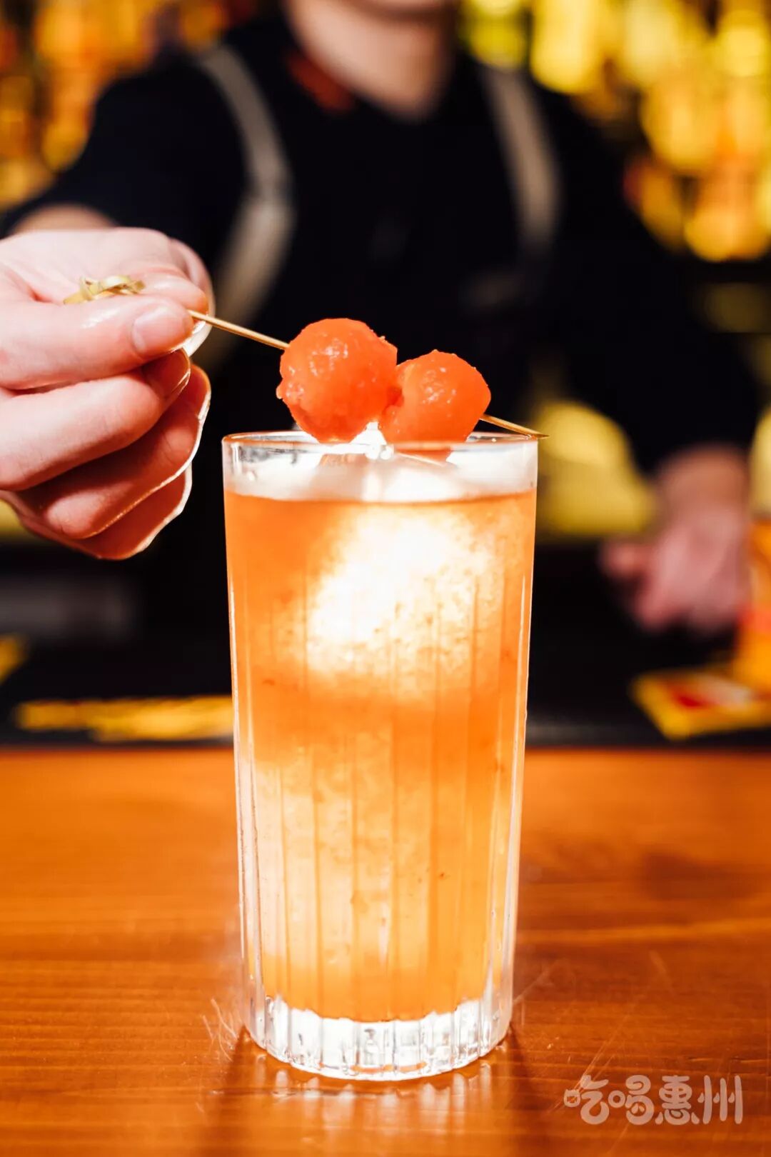 迷魂汤是店里的颜值货,血红色的鸡尾酒和苹果木屑燃起的迷幻轻烟给视觉极为惊艳的体验,清爽的石榴气息混合力娇酒的酸甜,甜中带酒的微涩,在舌尖萦绕。