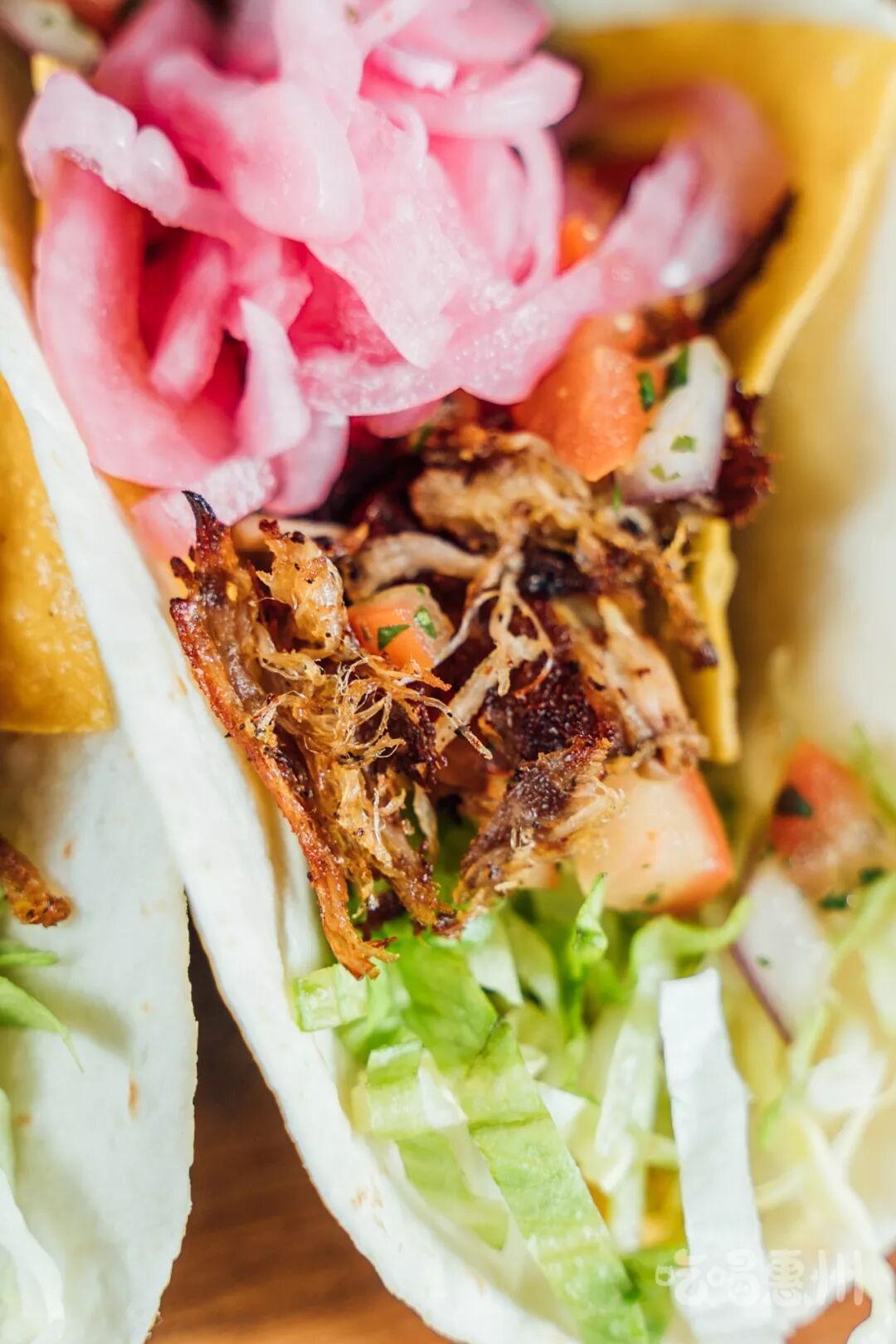 纯正的墨西哥玉米卷饼,搭配3种精选鲜蔬,再加以被精心腌制过的猪颈肉,每一口都是鲜嫩多汁,无法反驳!