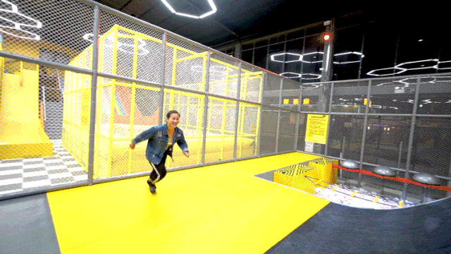 这里还有奥运蹦床!每到周末下午三点还会有专业教练的蹦床表演!这入场姿势,是我输了…