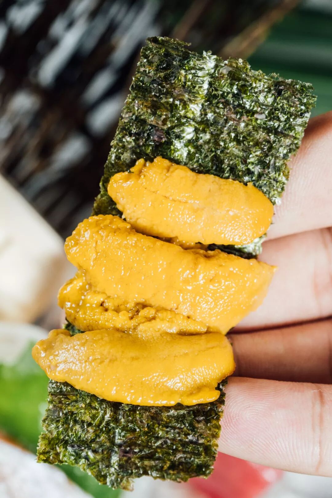 榴莲肉、榴莲芝士酱,简直就是个热量航空母舰!感受榴莲之余寿司饭出场巧妙缓解油腻,把甜美衬托得恰到好处~