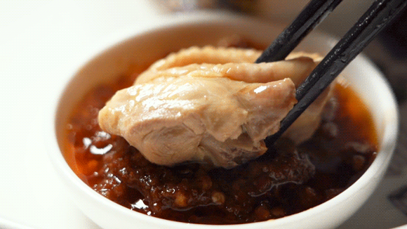 这里的鸡肉也不一般,是有着上千年的养殖历史的清远鸡。肉嫩、细滑皮爽;蘸上叹佬特制辣椒酱吃起来别有一番风味~