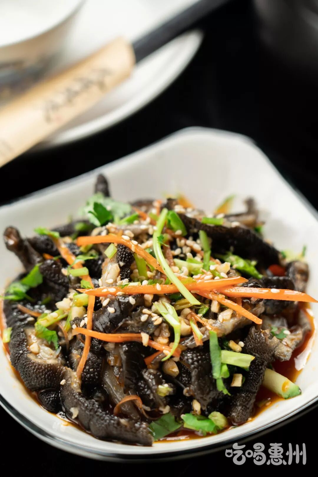 在凉菜中,鸡脚随处可见,啖无骨的乌鸡脚还是头一回见。