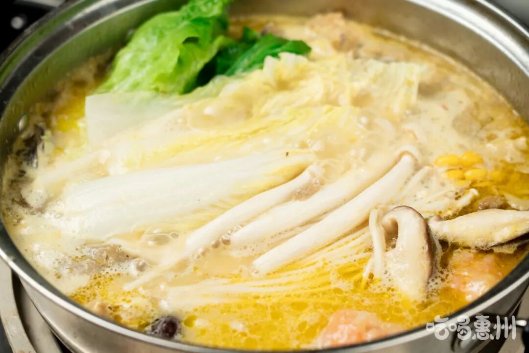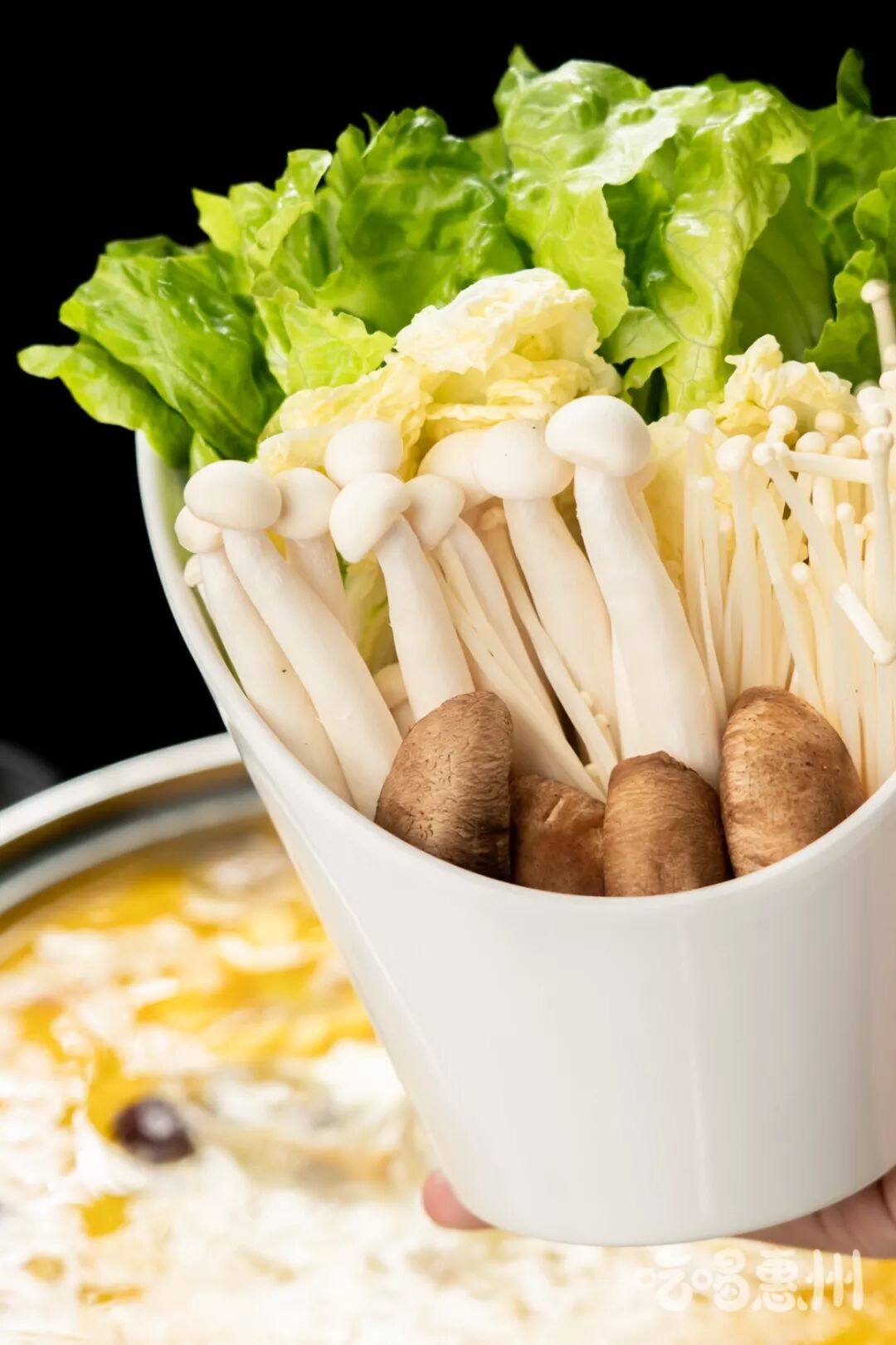 弹牙的手打虾滑,虾肉清晰可见;最后吃口吸满鸡汤的蔬菜,满足~