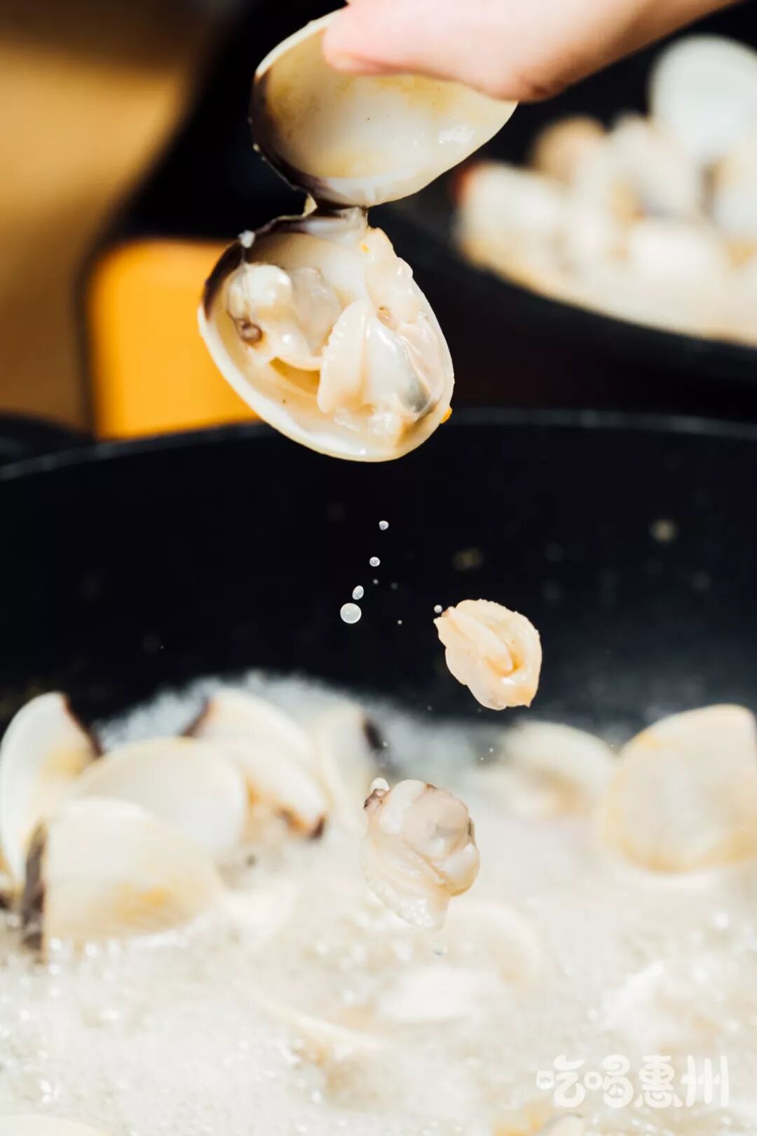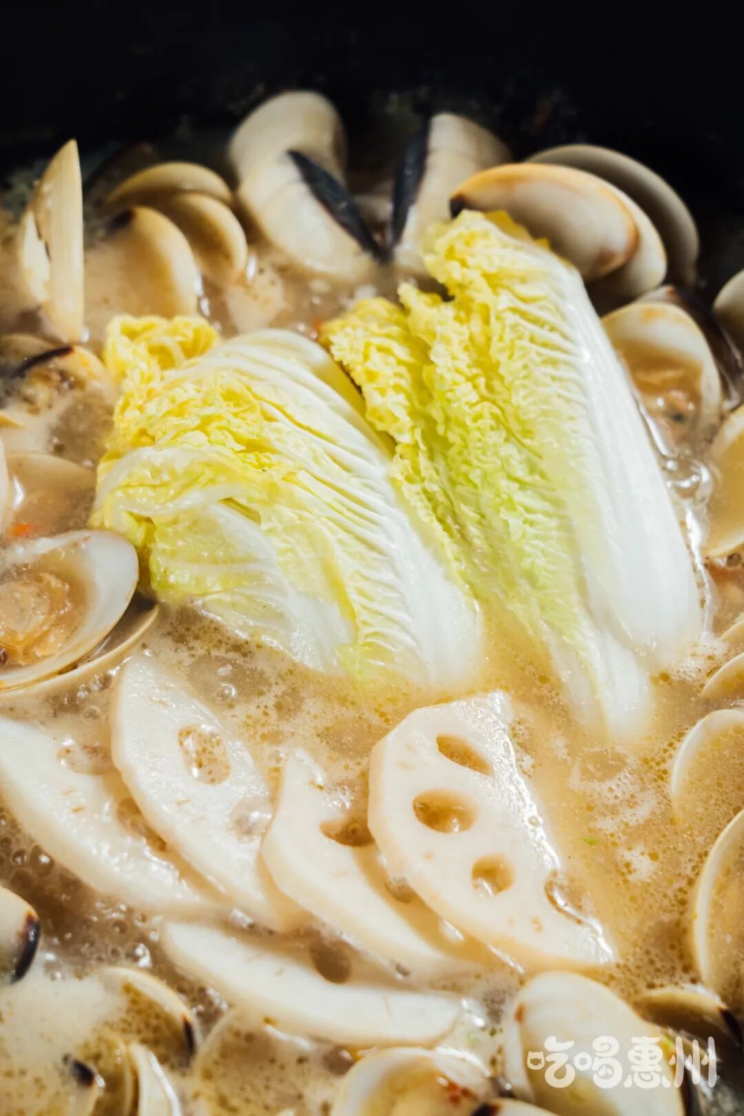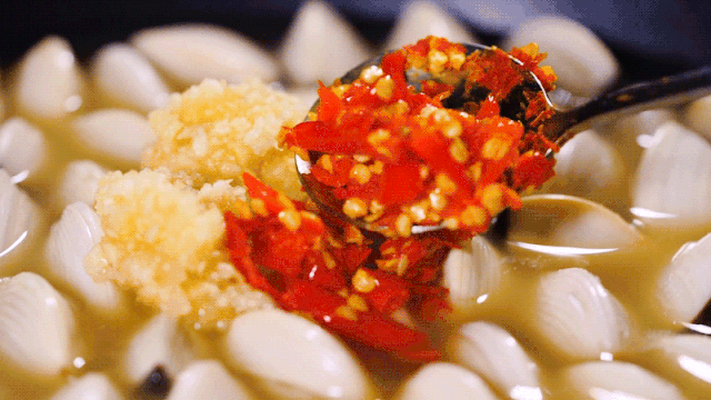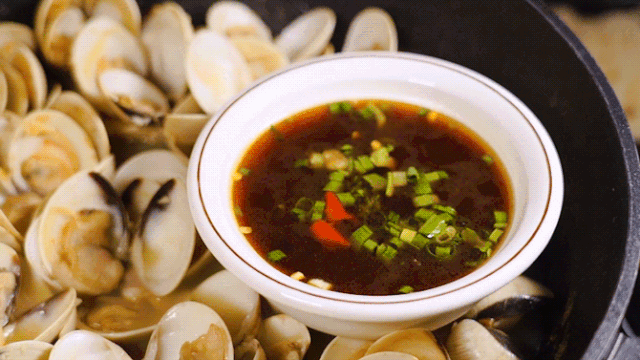 汤料一沸腾直接锁味,接着就能感受到整盘贝壳不断卜卜爆炸biu汁水的声音,真的很“动听”