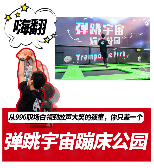 蹦床10分钟,相当于跑步30分钟!小小一块单人蹦床区任凭你自由造作,就连摔倒在地也觉得是种快乐,感受身体在蹦床面回弹的奇妙触感。