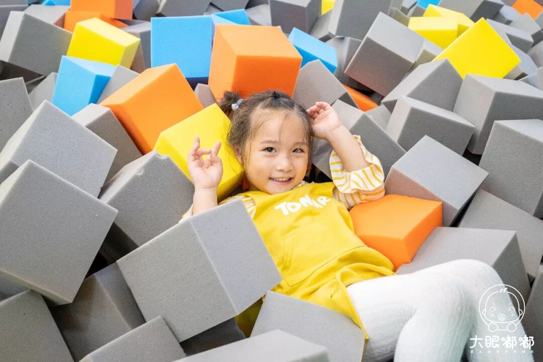 柔软多彩的海绵池永远的是美少女们最爱的打卡地,深陷在橙、黄、蓝、灰色相间的方块中,你会惊奇地发现,这…居然还是一方出片圣地!