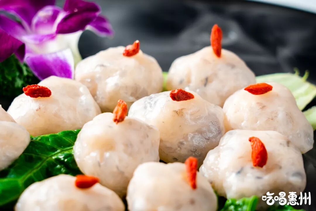 手工现做的虾滑圆咕噜的外貌,加上顶端的枸杞点缀,略带俏皮~