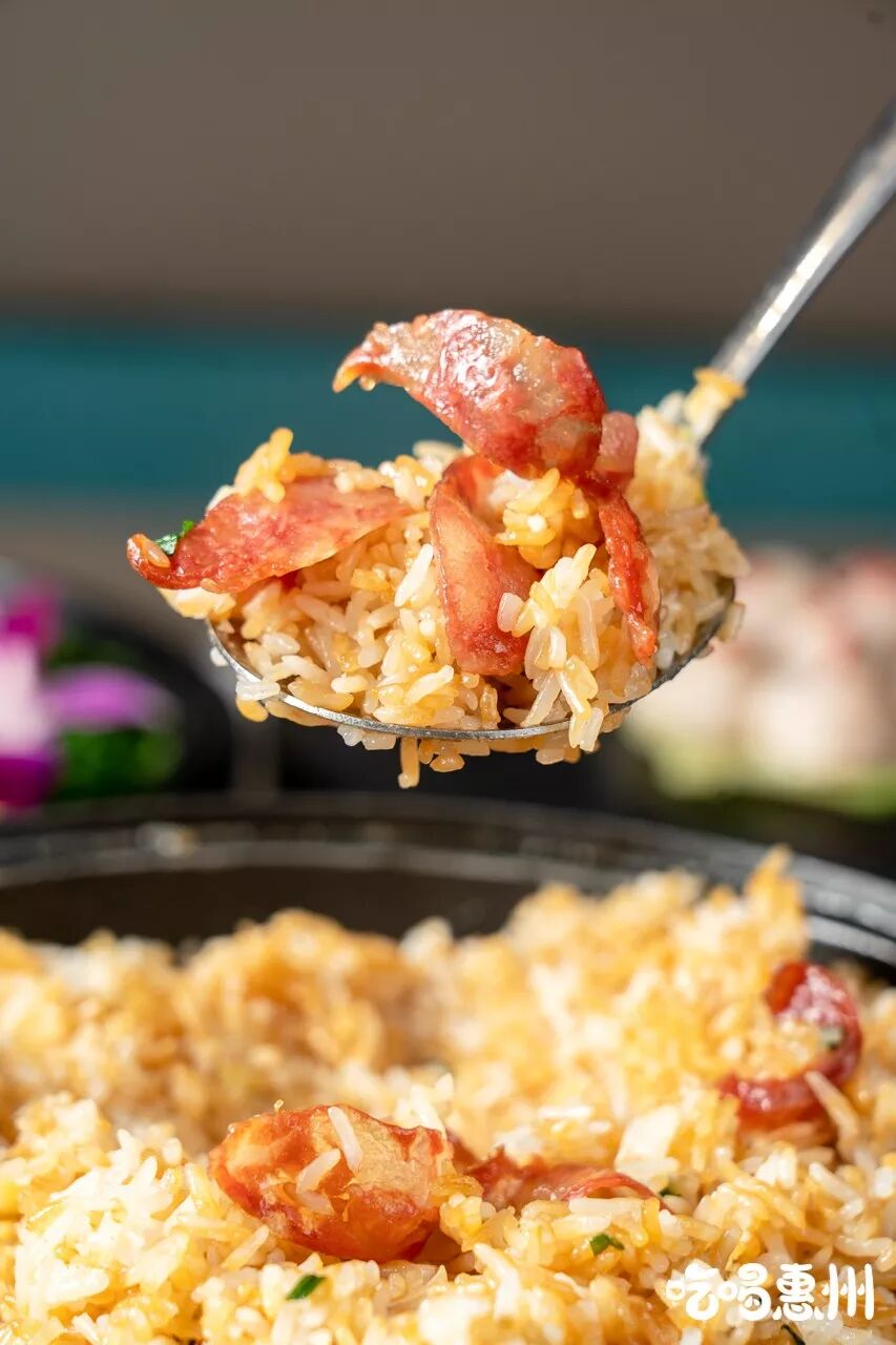 顺德广式腊肠、精选咸香腊肉与农家丝苗米的搭配,炮制出一锅喷香;趁热搅拌,底部的锅巴也不放过,趁热开吃,有点烫也没关系!
